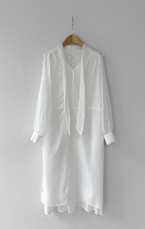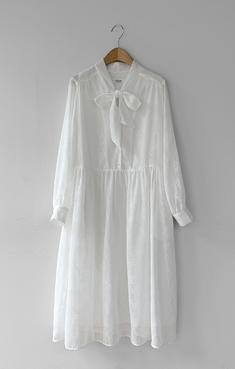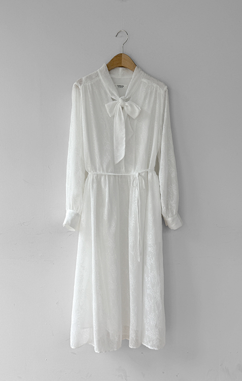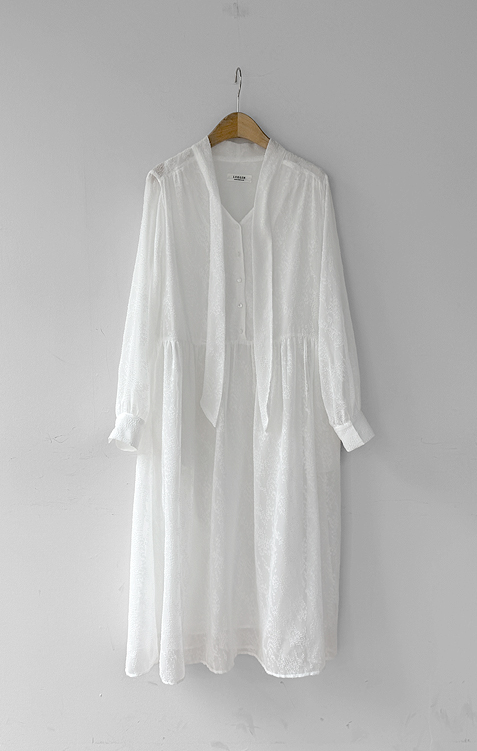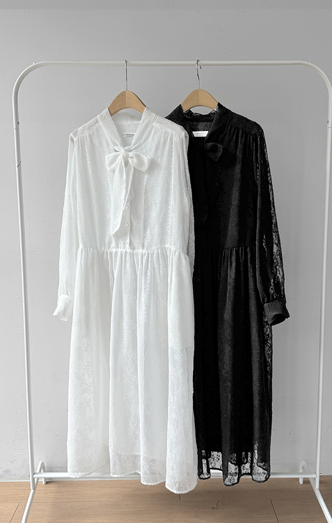 청순하면서도 여성스러운 분위기가 매력적인 레이스 롱 원피스 소개드려요 :) 전체적으로 은은한 결이 더해진 원단으로 과하지 않으면서도 고급스러운 포인트를 주는 아이템이에요*.* 넥 라인에는 2가지 연출이 가능한! 타이 디테일이 더해져 여리여리하면서도 로맨틱한 무드를 한층 더 살려주구요, 자연스럽게 떨어지는 실루엣이 단정한 분위기를 연출해준답니다ㅎㅎ 허리 부분에는 스트랩이 있어 체형에 맞게 핏 조절이 가능해 슬림하면서도 여성스러운 라인을 완성해줘요! 전체적으로 여유 있게 떨어지는 핏과 롱한 기장감으로 체형 커버까지 톡톡히 해주면서 부담 없이 즐기기 좋은 디자인이에요^.^ 가볍고 부드러운 소재감으로 착용 시 편안하면서도 기분 좋은 착용감을 느끼실 수 있구요, 밝은 컬러 특성상 비침이 있어 이너 필수! 덕분에 더욱 여리한 분위기를 더해줘요~✨ 단독으로 착용해도 충분히 포인트가 되며, 가디건이나 자켓과 함께 매치해주시면 계절에 따라 다양한 스타일링이 가능해요! 데일리룩은 물론, 데이트룩 / 하객룩 / 특별한 날까지 다양하게 활용하기 좋아 소장 가치 높은 아이템으로 추천드릴게요♡