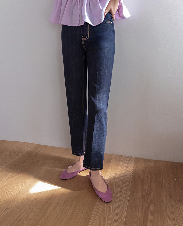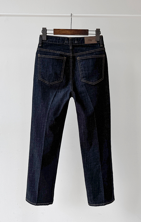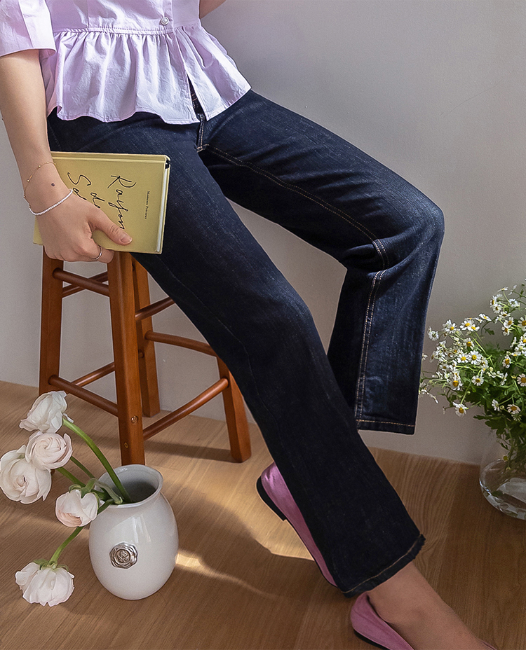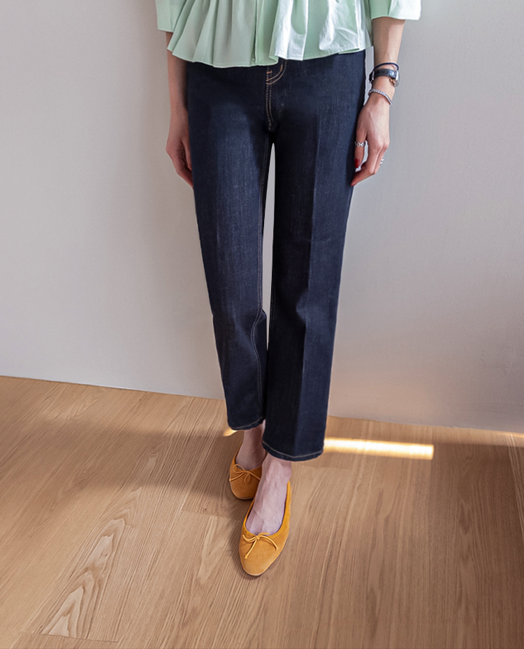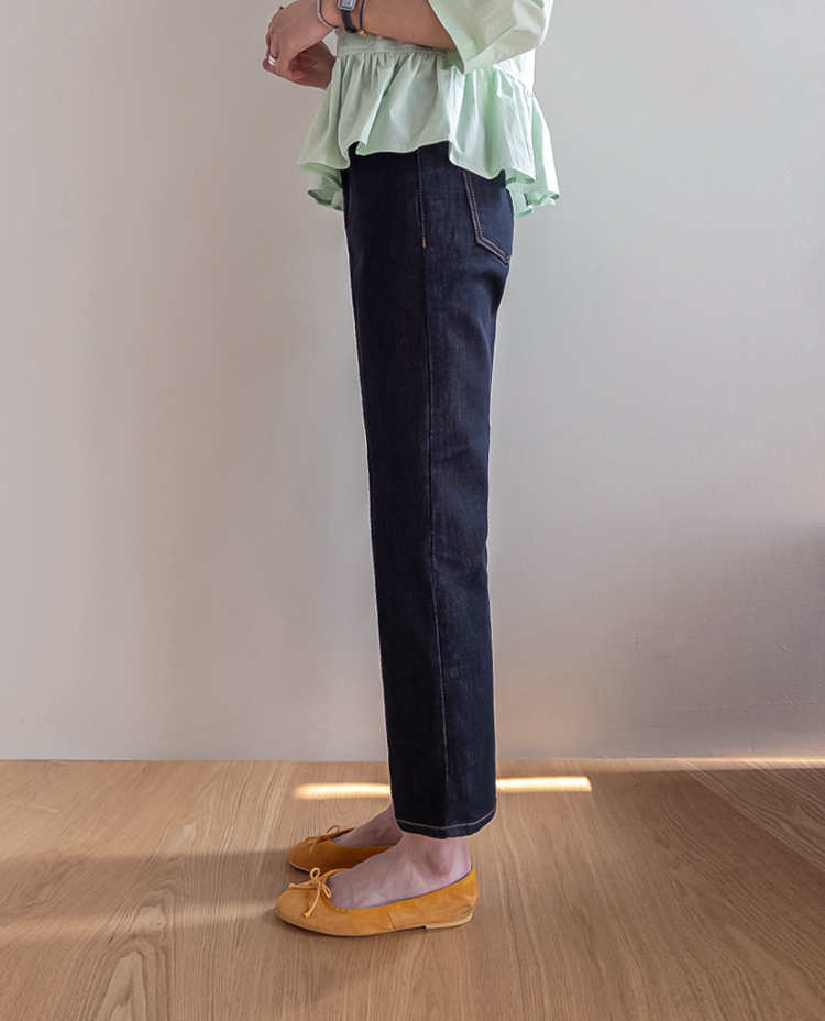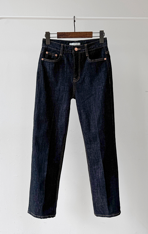 깔끔하고 세련된 무드의 생지 데님 팬츠 소개드려요 ^^ 전체적으로 군더더기 없이 일자로 곧게 떨어지는 핏으로 다리가 길고 슬림해 보이게 연출해주는 아이템이에요. 앞라인에는 레직기 디테일이 더해져 핏을 더욱 반듯하게 잡아주면서 캐주얼하면서도 단정한 분위기를 동시에 느끼실 수 있고요, 발목이 살짝 드러나는 크롭 기장감으로 답답하지 않고 산뜻하게 떨어지며 다양한 슈즈와 매치하기 좋습니다. 소재는 논페이드(Non-fade) 데님 원단으로 이염 걱정 없이 밝은 상의와도 부담 없이 착용 가능하며, 탄탄하게 핏을 잡아주는 느낌이에요. 셔츠, 티셔츠, 니트 어디에나 잘 어울려 데일리로 활용도 높은 데님으로 추천드릴게요 ♥