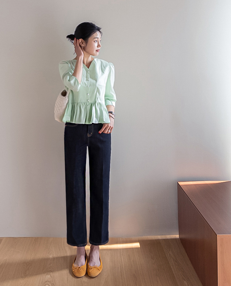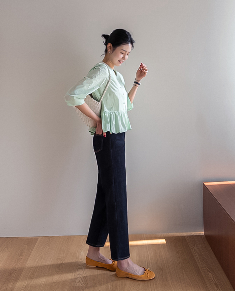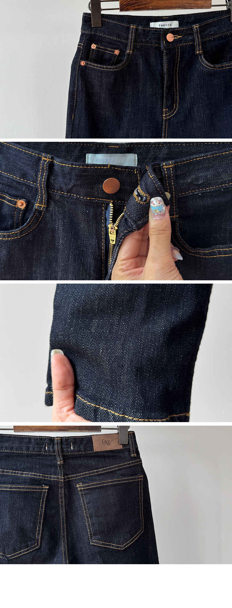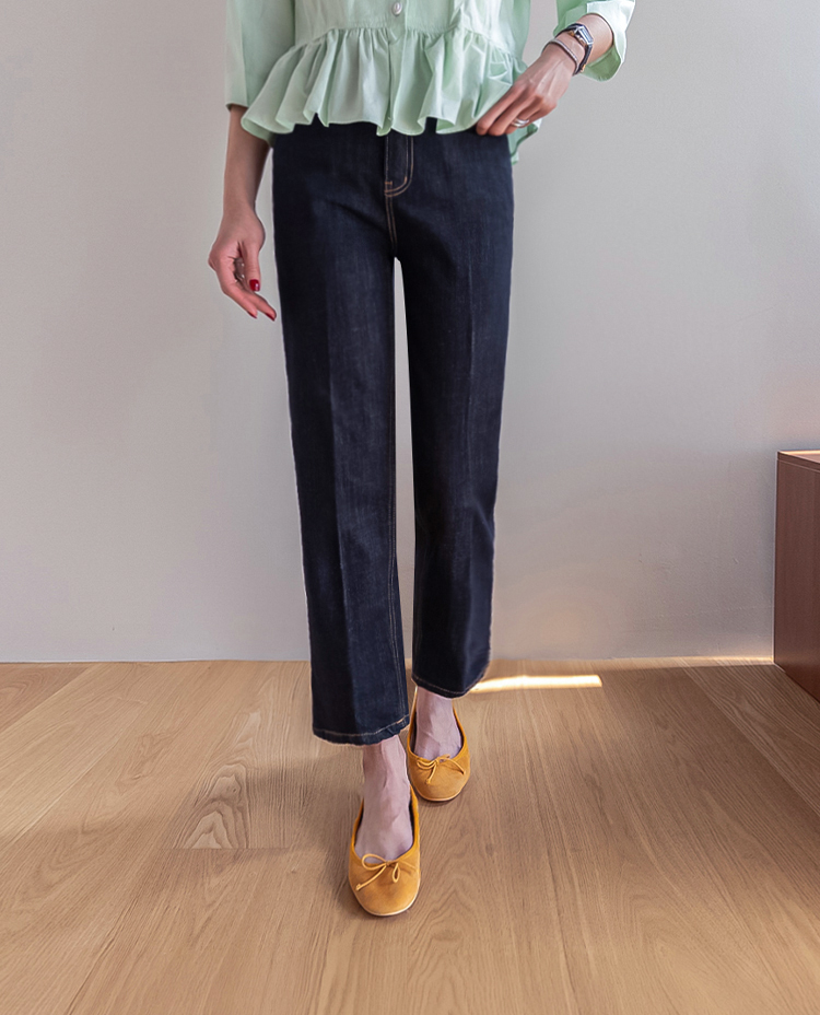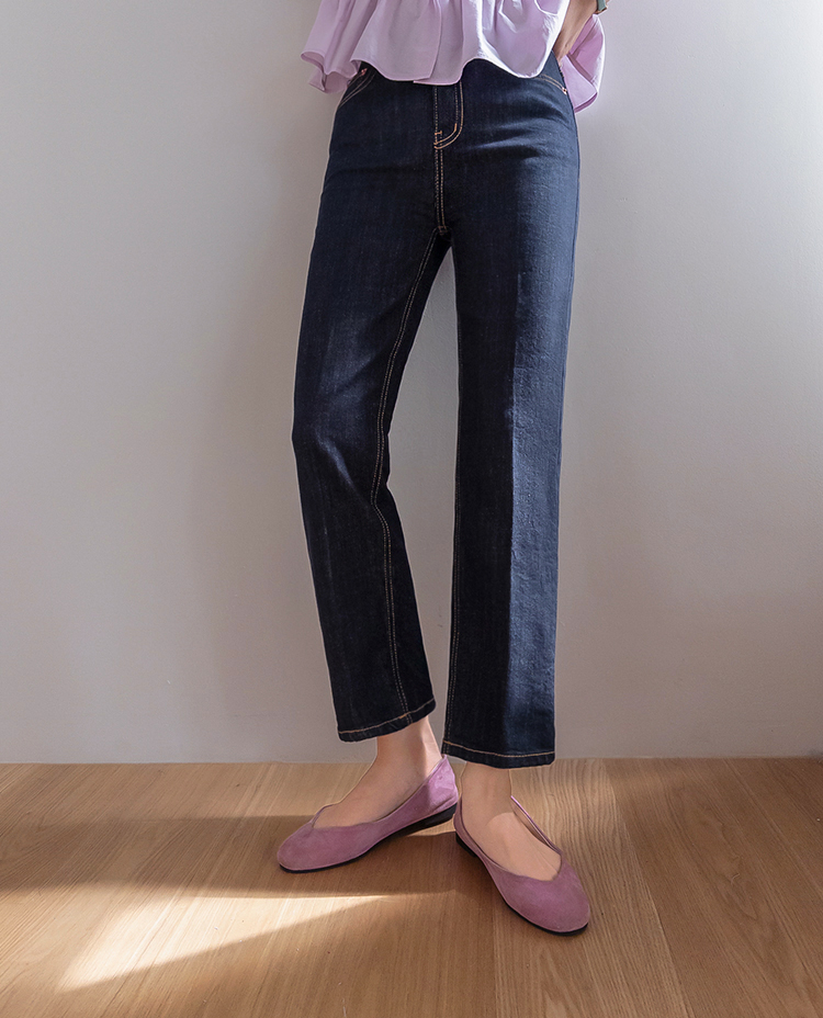 깔끔하고 세련된 무드의 생지 데님 팬츠 소개드려요 ^^ 전체적으로 군더더기 없이 일자로 곧게 떨어지는 핏으로 다리가 길고 슬림해 보이게 연출해주는 아이템이에요. 앞라인에는 레직기 디테일이 더해져 핏을 더욱 반듯하게 잡아주면서 캐주얼하면서도 단정한 분위기를 동시에 느끼실 수 있고요, 발목이 살짝 드러나는 크롭 기장감으로 답답하지 않고 산뜻하게 떨어지며 다양한 슈즈와 매치하기 좋습니다. 소재는 논페이드(Non-fade) 데님 원단으로 이염 걱정 없이 밝은 상의와도 부담 없이 착용 가능하며, 탄탄하게 핏을 잡아주는 느낌이에요. 셔츠, 티셔츠, 니트 어디에나 잘 어울려 데일리로 활용도 높은 데님으로 추천드릴게요 ♥