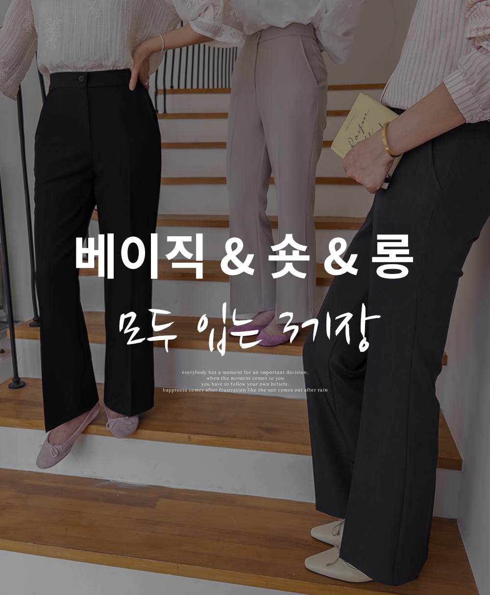 작은 키, 큰 키 어중간한 기장의 바지 핏으로 고민 많으셨던 분들 여기 주목!! 리린이 그 고민을 덜어주기 위해 숏, 기본, 롱 3가지 세분화된 기장을 준비했어요~ 말 그대로 수선비 0원인 제로컷 부츠핏으로 하체 군살을 쏘옥 가려 예쁜 라인 만들어주고~ 수선 없이 내 키에 딱 맞는 기장감을 선택할 수 있답니다ㅎㅎ 편안한 허리 전체 밴딩은 물론, 스판이 있어 앉았다 일어나도~ 밥을 많이 먹어도 너무 편해요*.* 안정적이고 길어보이는 데일리 기장으로 휘뚤~마뚤 즐기기 좋은 슬랙스!! 놓치면 정말 후회하실 거예요~ 강추 드려요~♡