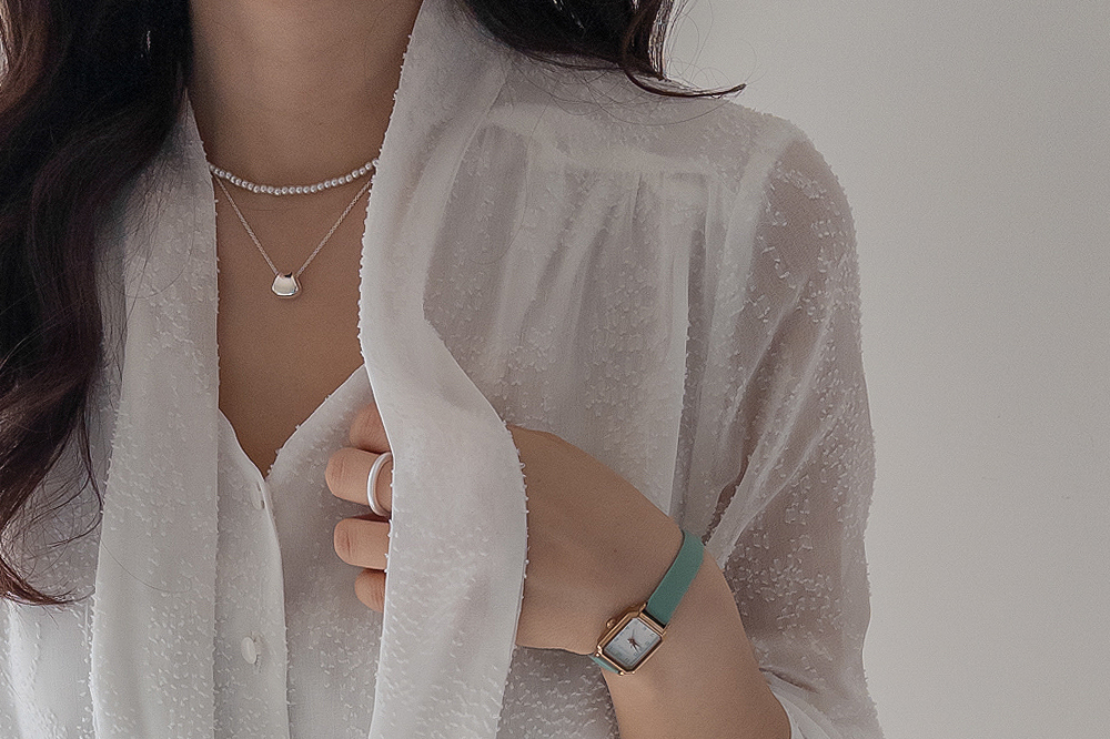 진주 목걸이나 다른 얇은 체인과 함께 레이어드해도 잘 어울려요.