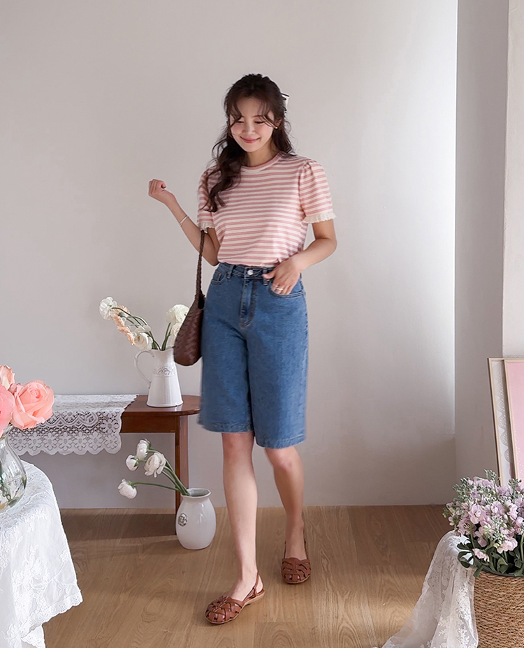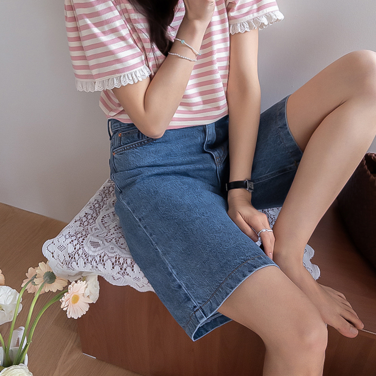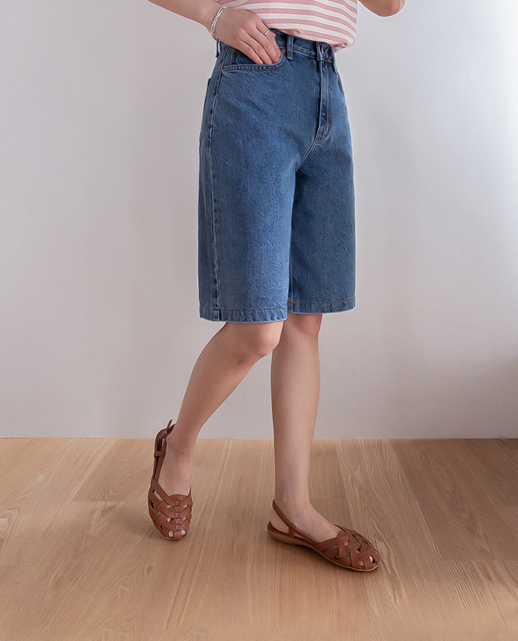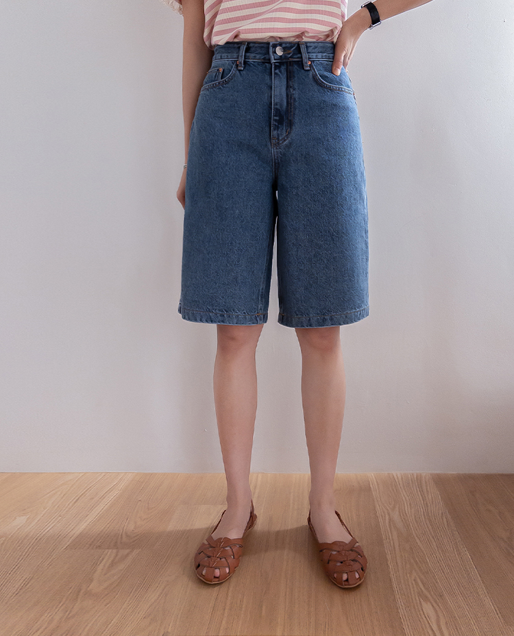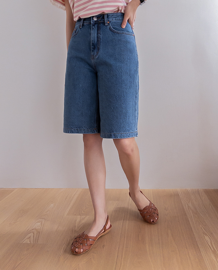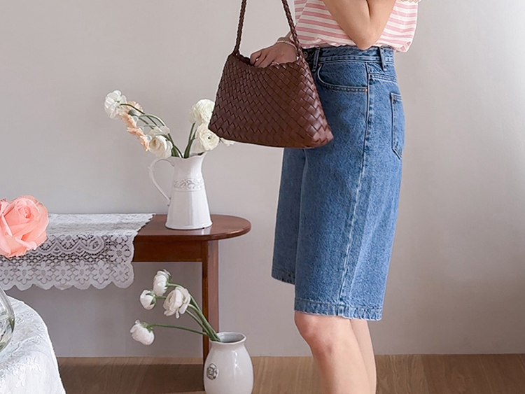 가볍고 경쾌하게 즐기기 좋은 데님 버뮤다 팬츠 소개드려요 ^^ 전체적으로 허리와 힙은 안정감 있게 잡아주고 밑단까지 여유 있게 일자로 떨어지는 실루엣으로 부담 없이 편안하게 입기 좋은 아이템이에요. 기장은 무릎 위 정도로 내려오는 버뮤다 길이감으로 너무 짧지 않아 데일리하게 착용하기 좋고 다리 라인도 한층 더 슬림하고 길어 보이게 연출해줘요. 데님 특유의 탄탄한 소재감이 전체 핏을 깔끔하게 잡아주어 입었을 때 벙벙하기보다 정돈된 캐주얼 무드가 느껴지고요, 티셔츠, 셔츠, 니트 어디에나 잘 어울려 여름 시즌 데일리룩으로 활용하기 좋은 데님 버뮤다 팬츠로 추천드릴게요 ♥