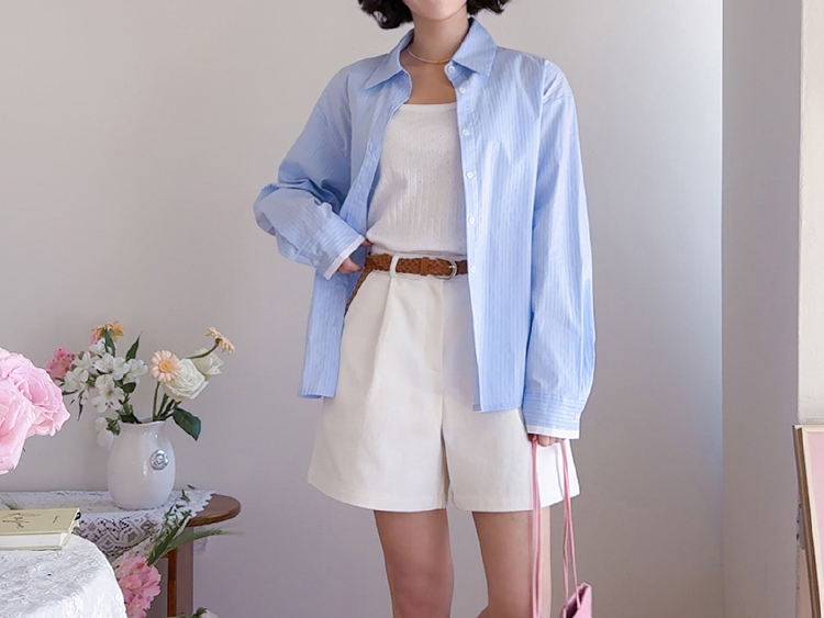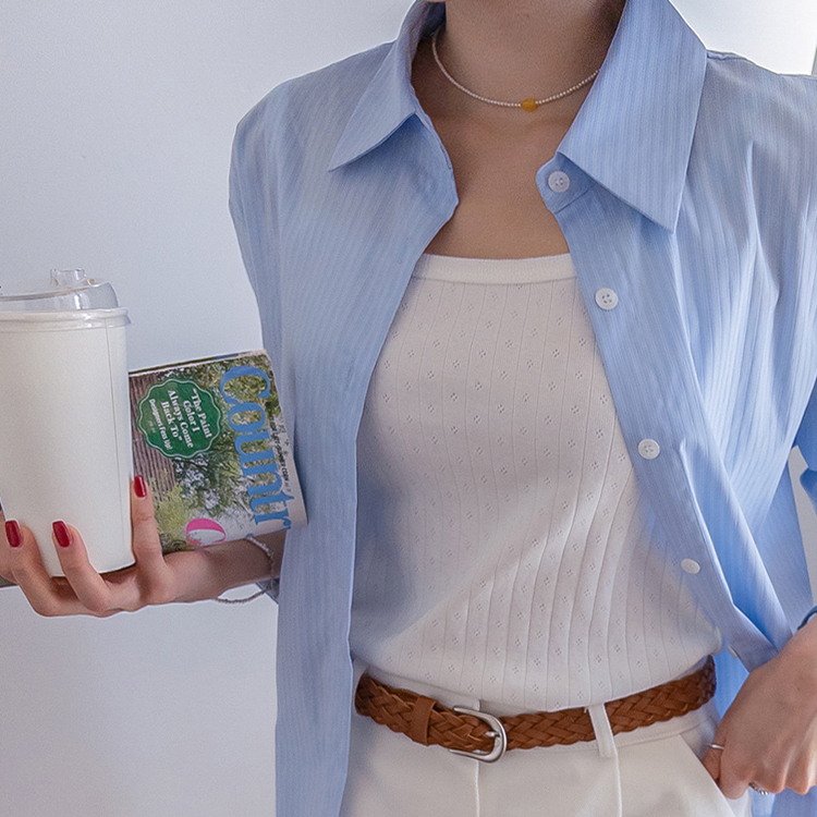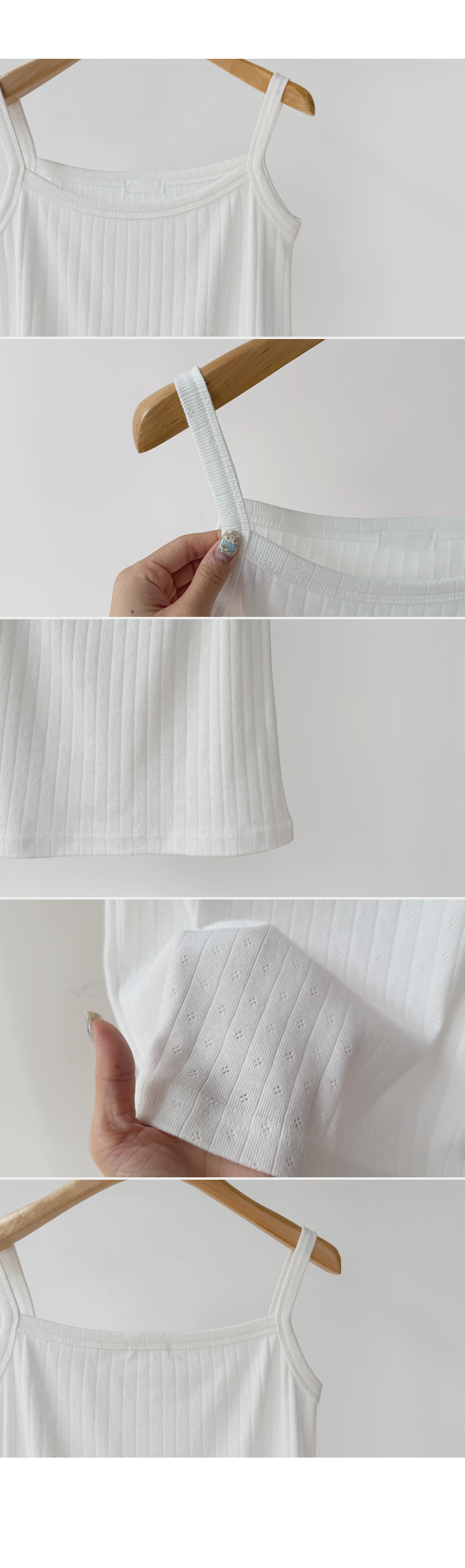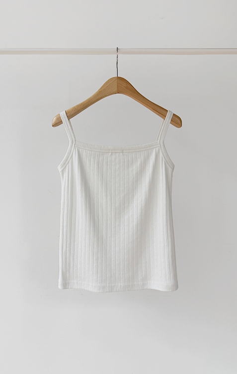 가볍고 시원하게 입기 좋은 슬리브리스 소개드려요 ^^ 전체적으로 세로 골지 짜임에 잔잔한 펀칭 디테일이 더해진 원단으로 밋밋하지 않고 은은한 텍스처가 느껴지는 아이템이에요. 탄탄하기보다는 유연하고 부드러운 촉감으로 바디에 자연스럽게 밀착되면서 편안하게 착용되는 것이 특징이고요, 과하게 비침이 도는 소재가 아니라 펀칭 디테일 덕분에 가볍고 통기성 있게 느껴져 여름 시즌 쾌적하게 입기 좋아요. 넥라인과 어깨끈은 안정감 있게 잡아주어 단독으로는 물론 셔츠나 가디건 안에 이너로 활용하기에도 좋은 아이템이에요. 데일리 기본템으로 하나쯤 소장하시면 다양하게 활용하기 좋아 추천드릴게요 ♥