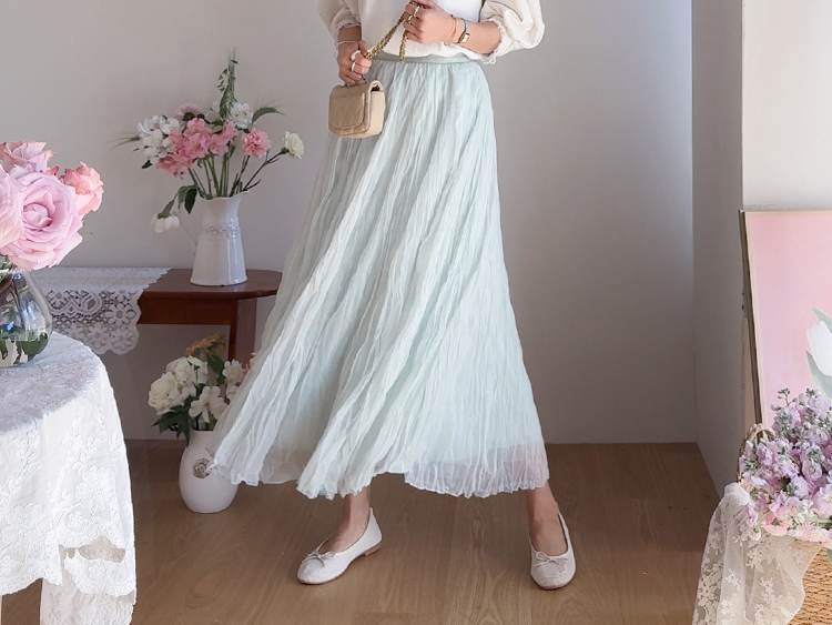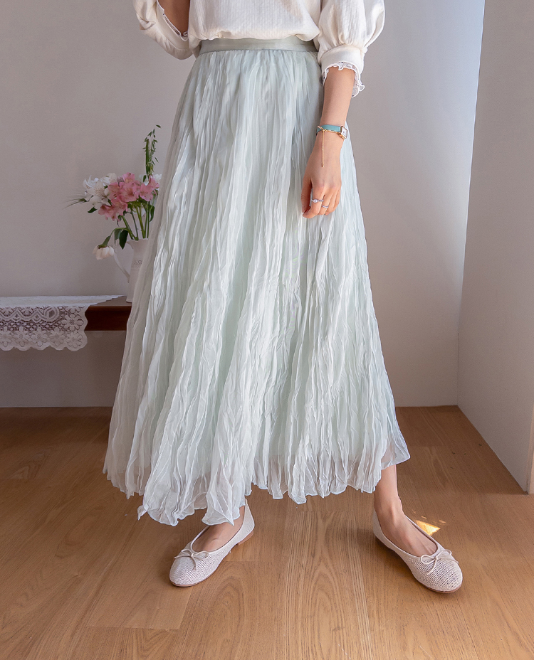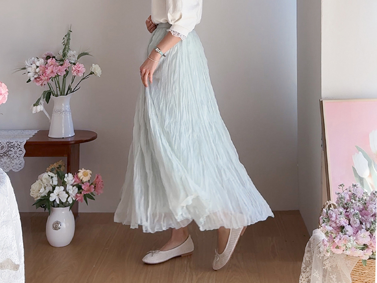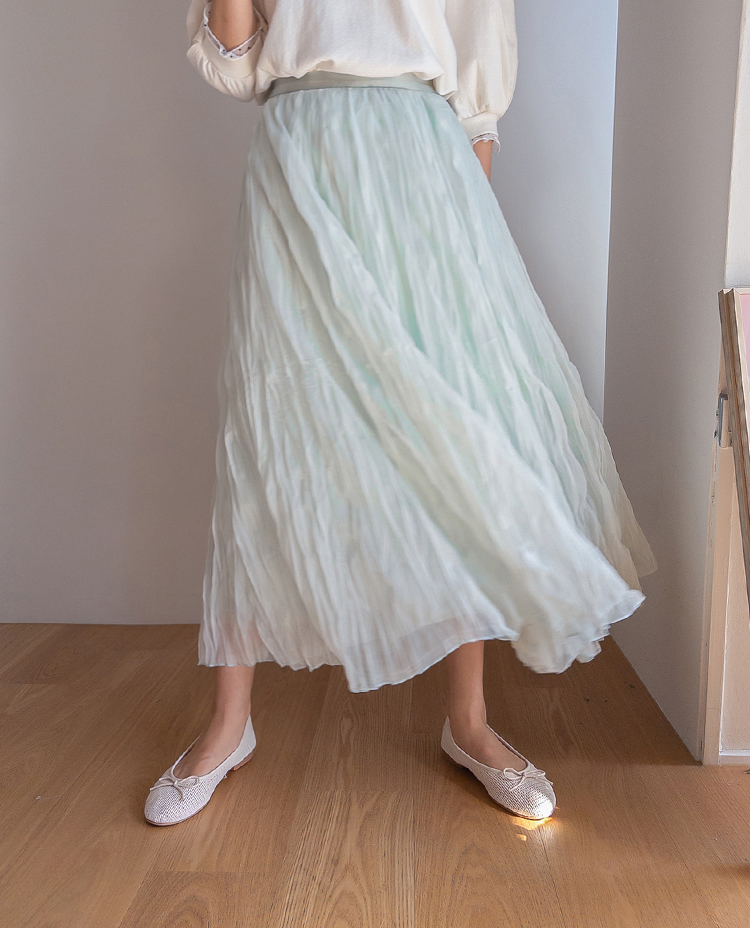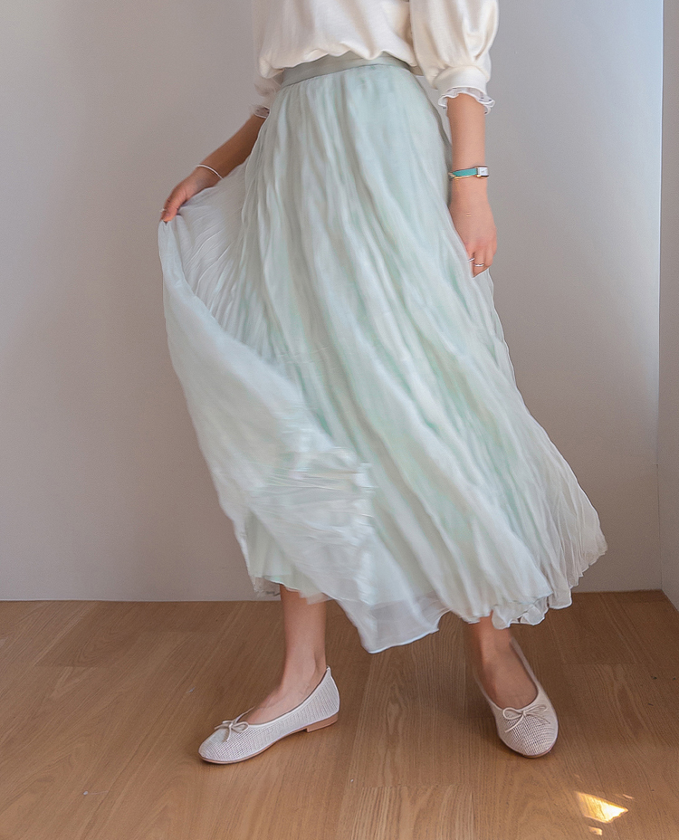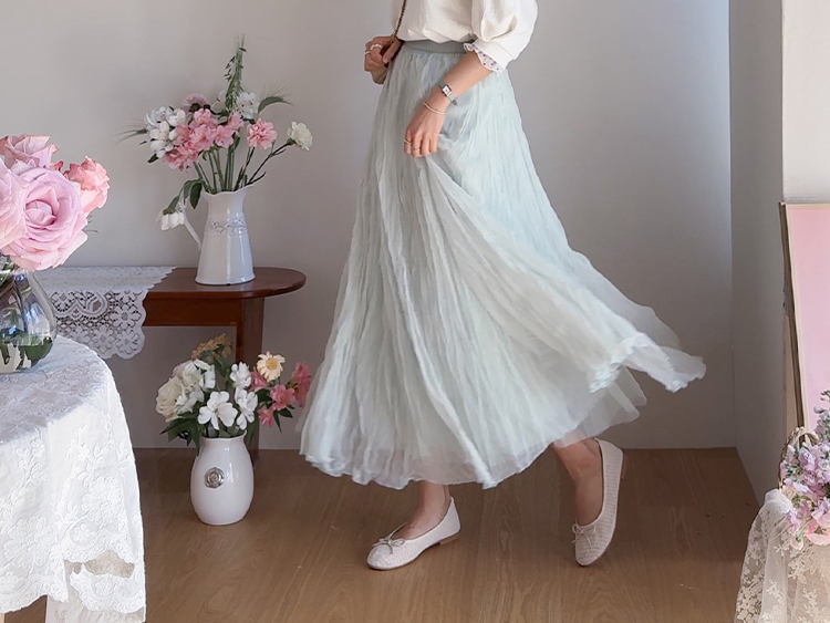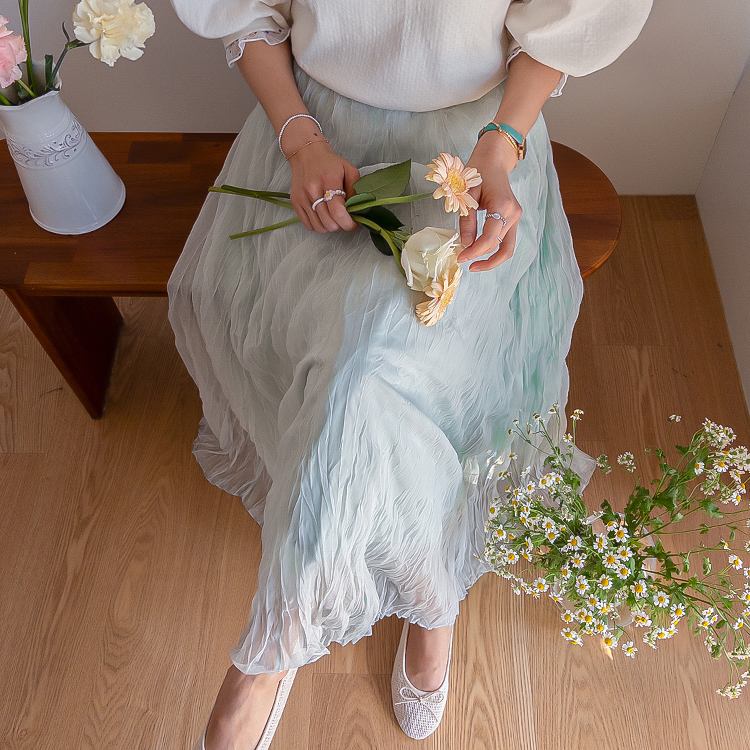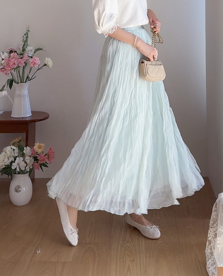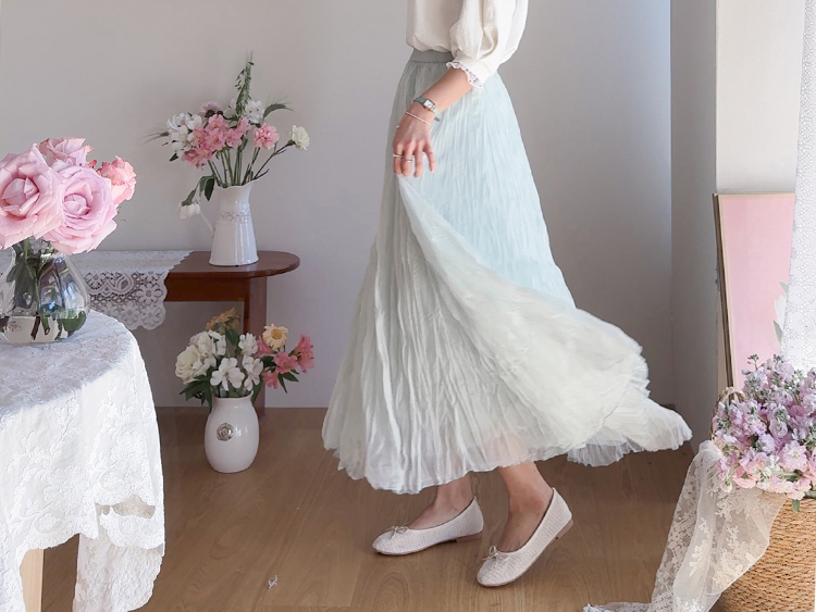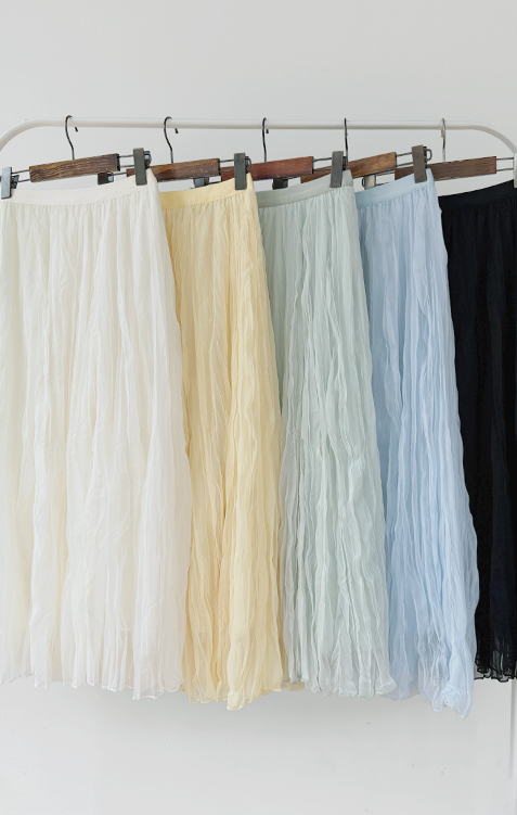 가볍고 여리한 분위기가 돋보이는 쉬폰 훌 스커트 소개드려요 :) 전체적으로 불규칙하게 잡힌 링클 주름이 자연스럽고 내추럴한 텍스처를 만들어주어 움직일 때마다 더욱 멋스럽게 표현돼요. 허리 아래로는 부드럽게 퍼지는 A라인 훌 실루엣으로 가볍고 풍성한 느낌을 살려주면서 체형 커버에도 효과적이에요. 허리는 전체 밴딩으로 제작되어 편안하게 착용 가능하며 장시간 착용에도 부담 없이 입어져요. 티셔츠, 니트, 블라우스 어디에나 잘 어울려 데일리룩부터 여성스러운 코디까지 다양하게 활용하기 좋은 스커트로 추천드릴게요 ♥