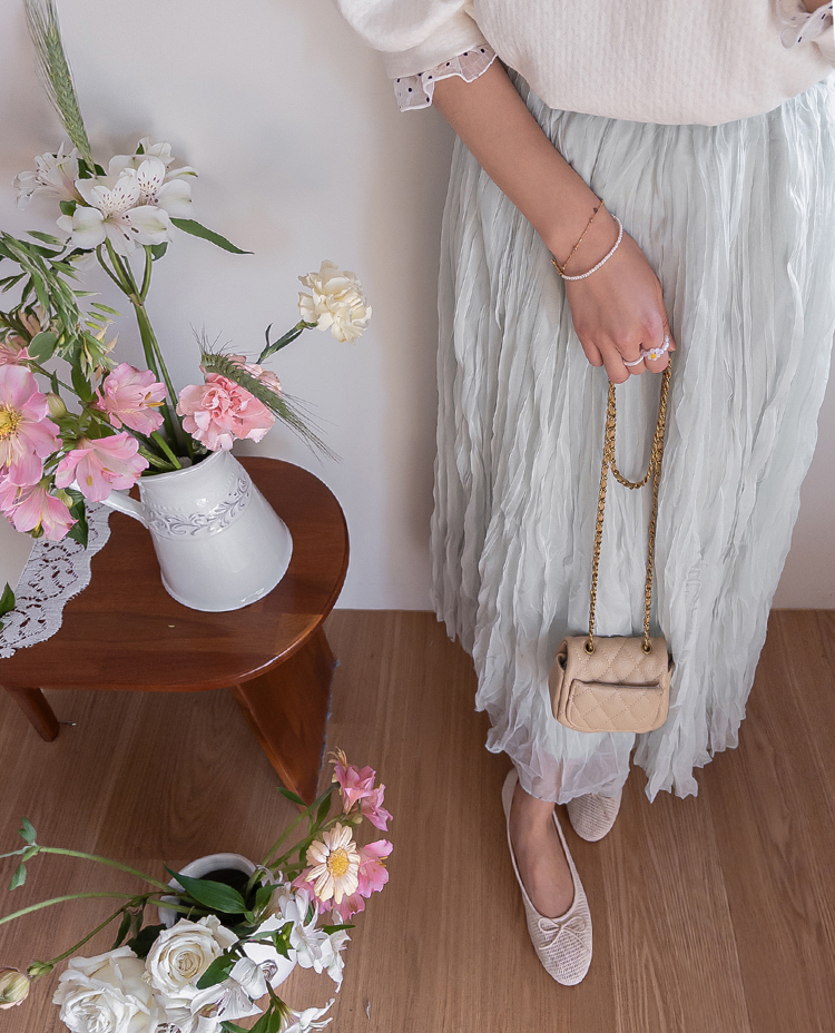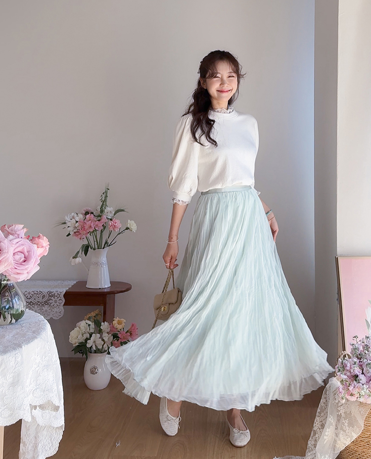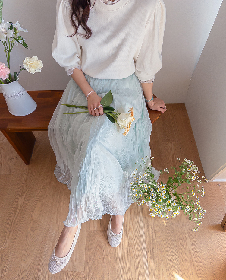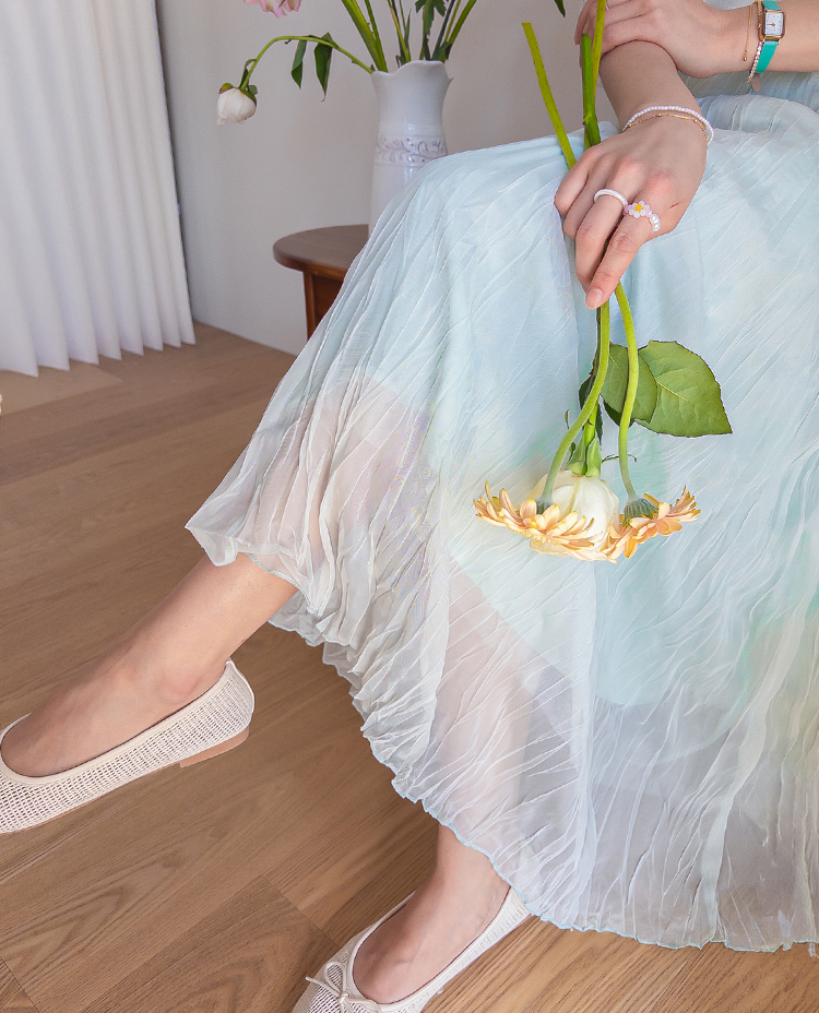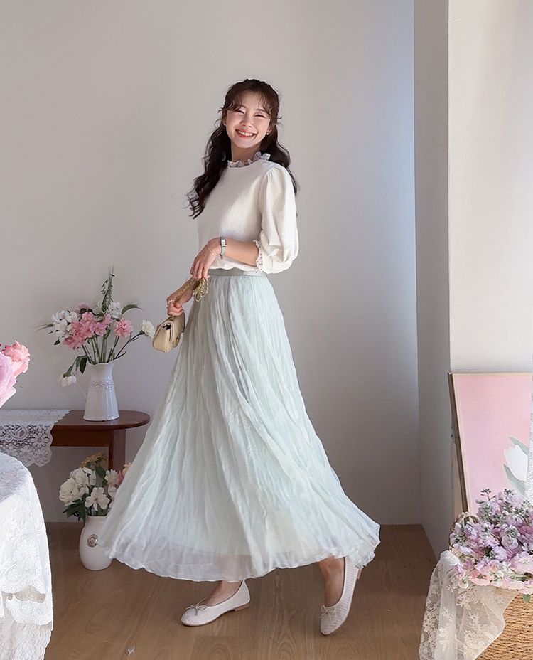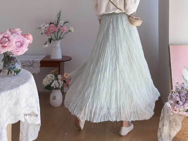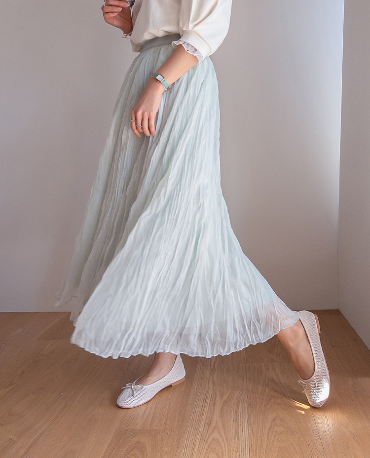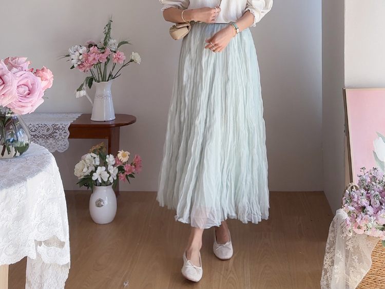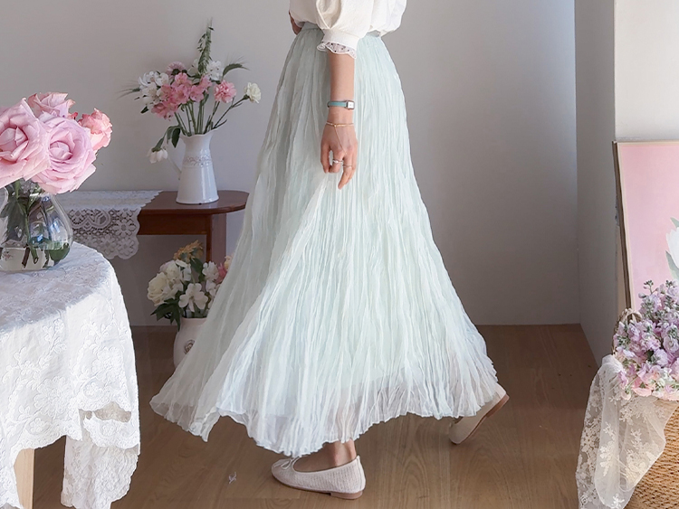 가볍고 여리한 분위기가 돋보이는 쉬폰 훌 스커트 소개드려요 :) 전체적으로 불규칙하게 잡힌 링클 주름이 자연스럽고 내추럴한 텍스처를 만들어주어 움직일 때마다 더욱 멋스럽게 표현돼요. 허리 아래로는 부드럽게 퍼지는 A라인 훌 실루엣으로 가볍고 풍성한 느낌을 살려주면서 체형 커버에도 효과적이에요. 허리는 전체 밴딩으로 제작되어 편안하게 착용 가능하며 장시간 착용에도 부담 없이 입어져요. 티셔츠, 니트, 블라우스 어디에나 잘 어울려 데일리룩부터 여성스러운 코디까지 다양하게 활용하기 좋은 스커트로 추천드릴게요 ♥