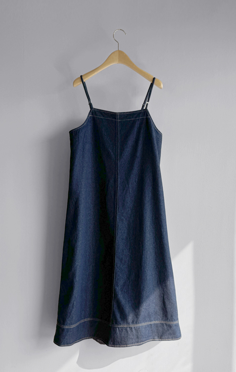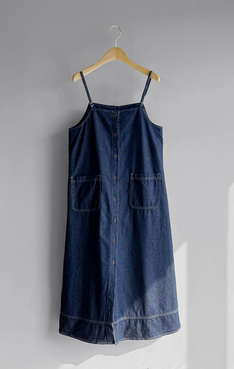 【前中心ボタンで多彩な演出可能*.*】【過ぎないAラインシルエット】【肩ひも長さ調節可能】【ステッチディテールでカジュアルなポイント】