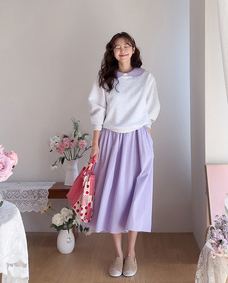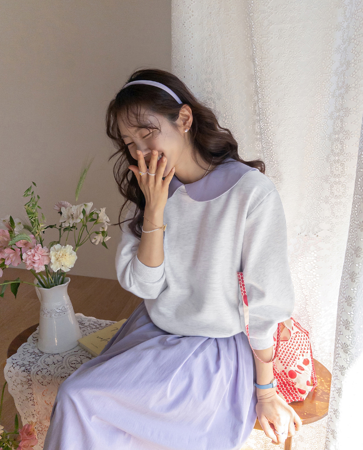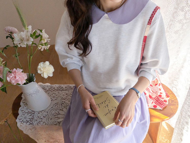 베이직한 듯하면서도 디테일로 차별화된 맨투맨 소개드려요 :) 전체적으로는 깔끔한 라운드넥 디자인에 군더더기 없는 실루엣이라 데일리로 편하게 입기 좋으면서, 소매에 포인트를 준 디자인이에요. 소매는 단순한 벌룬이 아니라 소매 중심에 절개선을 넣어 입체적으로 잡아준 구조로 자연스럽게 둥글게 말리듯 볼륨이 형성되어 옆에서 봤을 때 더 예쁜 실루엣을 만들어줘요. 절개선을 따라 곡선으로 떨어지는 라인이 핏을 더 입체감 있게 살려주는 게 포인트예요. 소매 끝은 시보리로 안정감 있게 잡아주어 볼륨감은 살리면서도 부해 보이지 않고, 전체적으로 여유 있는 핏으로 편안하게 착용하실 수 있어요. 슬랙스, 데님, 스커트 어디에나 잘 어울려 꾸안꾸 데일리룩부터 가볍게 외출룩까지 활용도 높게 입어질 아이템으로 추천드릴게요 ♥