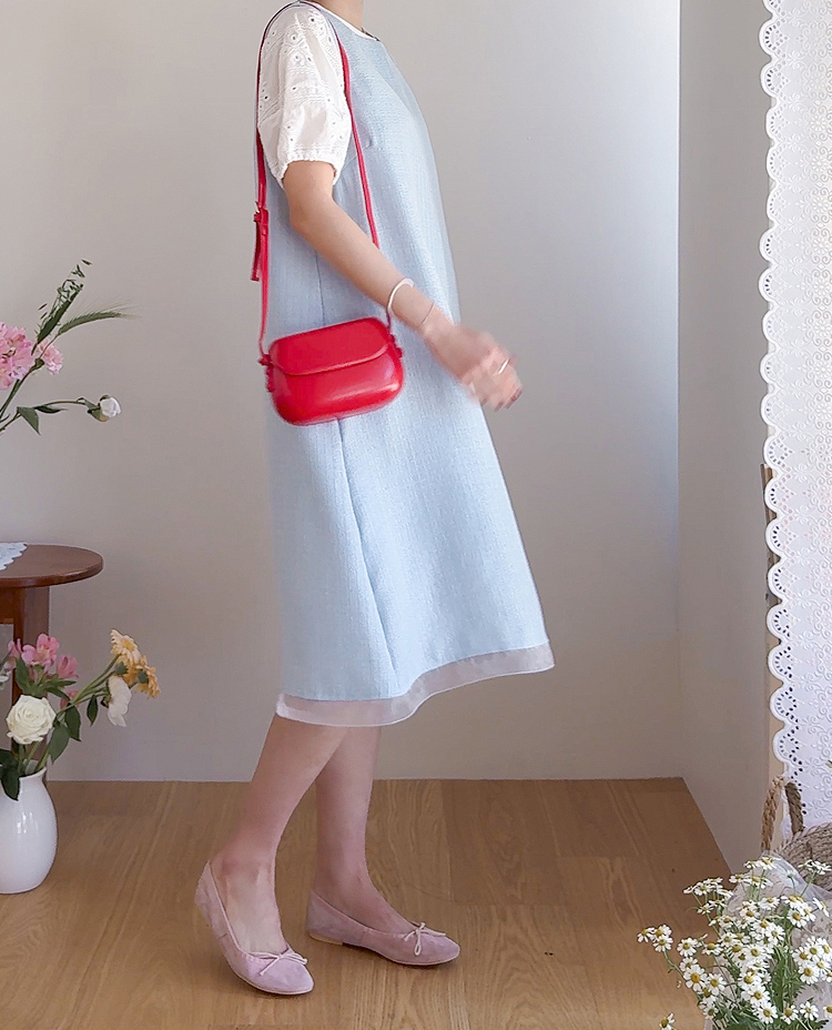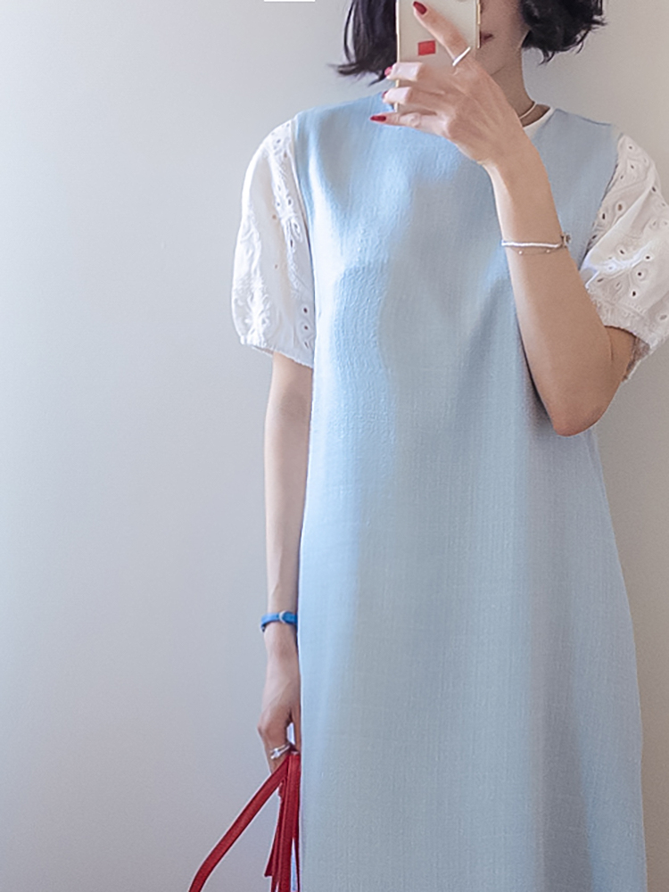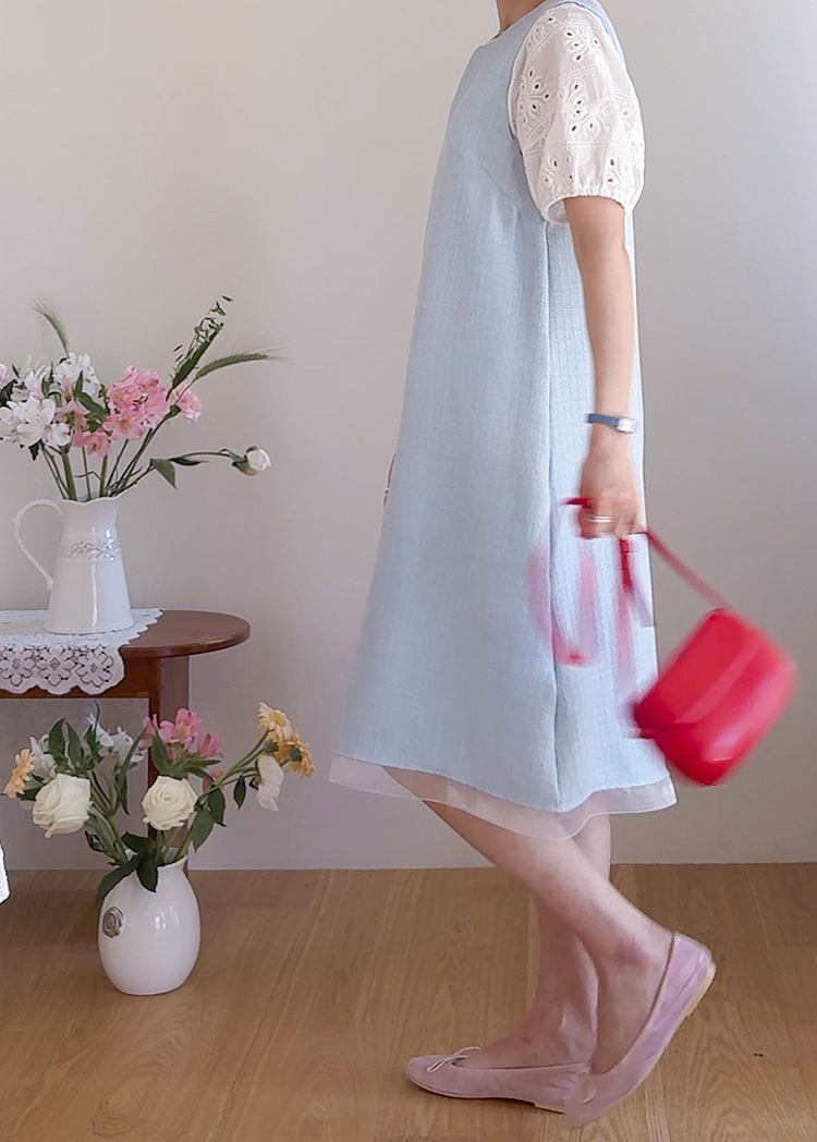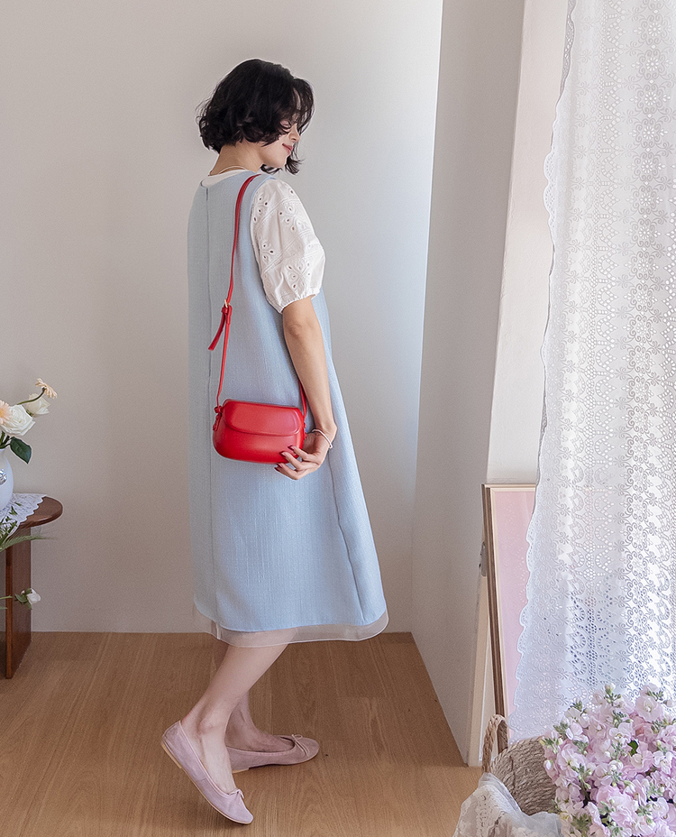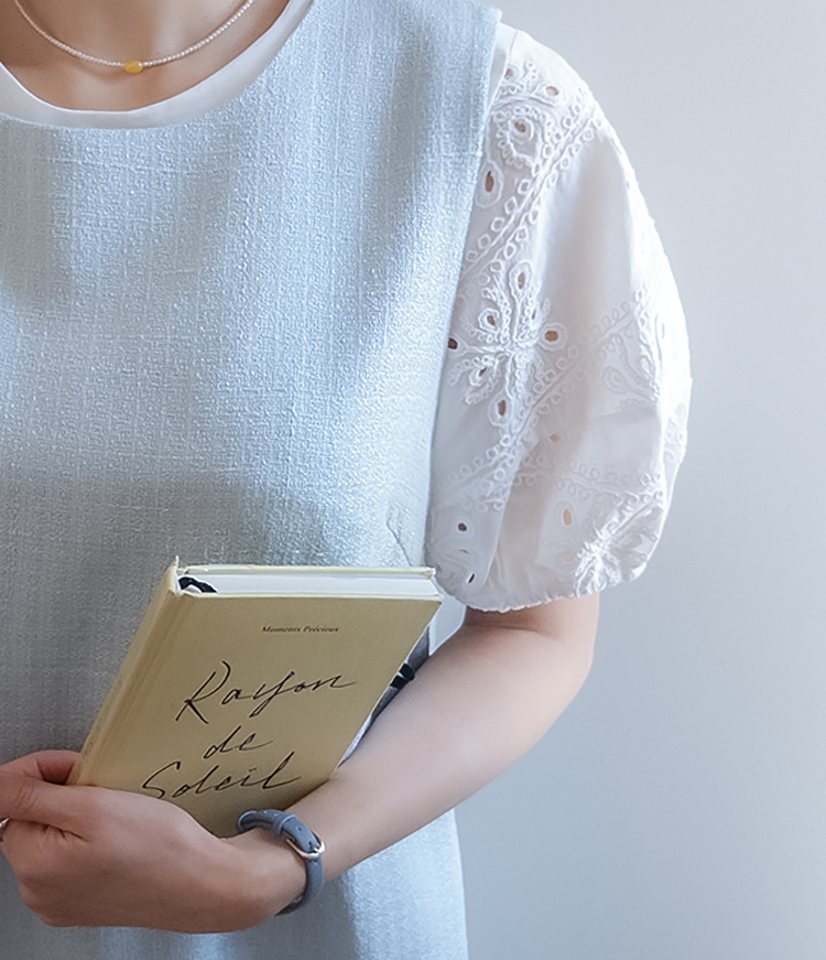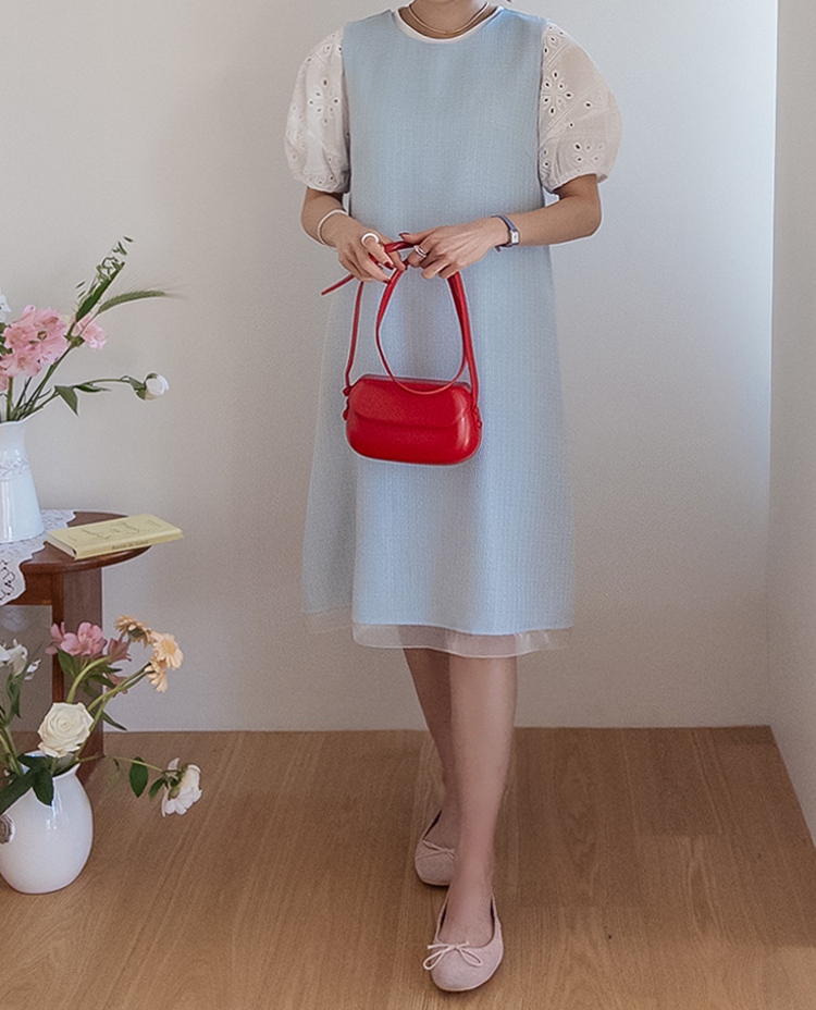 베이직하면서도 포인트가 살아있는 퍼프 티셔츠 소개드려요 ^^ 몸판은 깔끔한 기본 티셔츠 디자인에 소매 부분에 펀칭 레이스 원단을 더해 은은하게 여성스러운 분위기를 살려준 아이템이에요. 소매는 자연스럽게 볼륨이 잡히는 퍼프 실루엣으로 팔라인을 부드럽게 커버해주면서 입었을 때 더욱 사랑스러운 핏을 만들어주고요, 레이스 특유의 디테일이 더해져 단독으로도 충분히 포인트가 되면서 원피스나 베스트와 레이어드했을 때도 소매가 예쁘게 드러나 활용도가 높아요. 데님, 스커트, 원피스 이너까지 다양하게 매치하기 좋은 데일리 포인트 티셔츠로 추천드릴게요 ♥