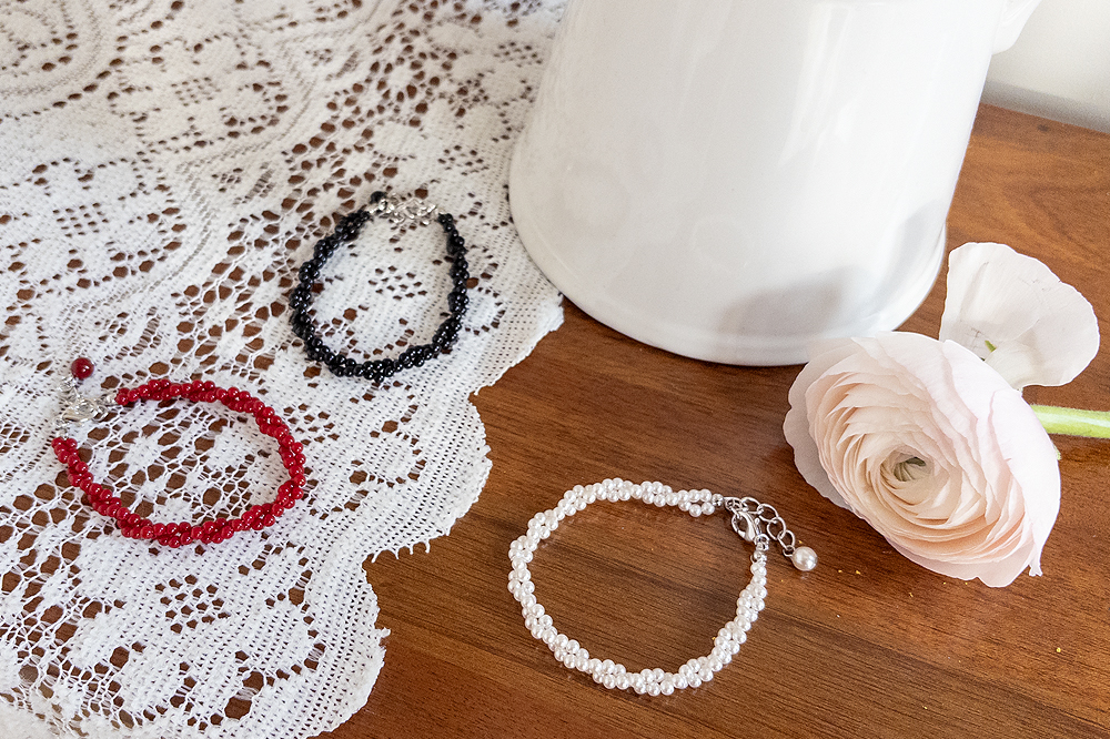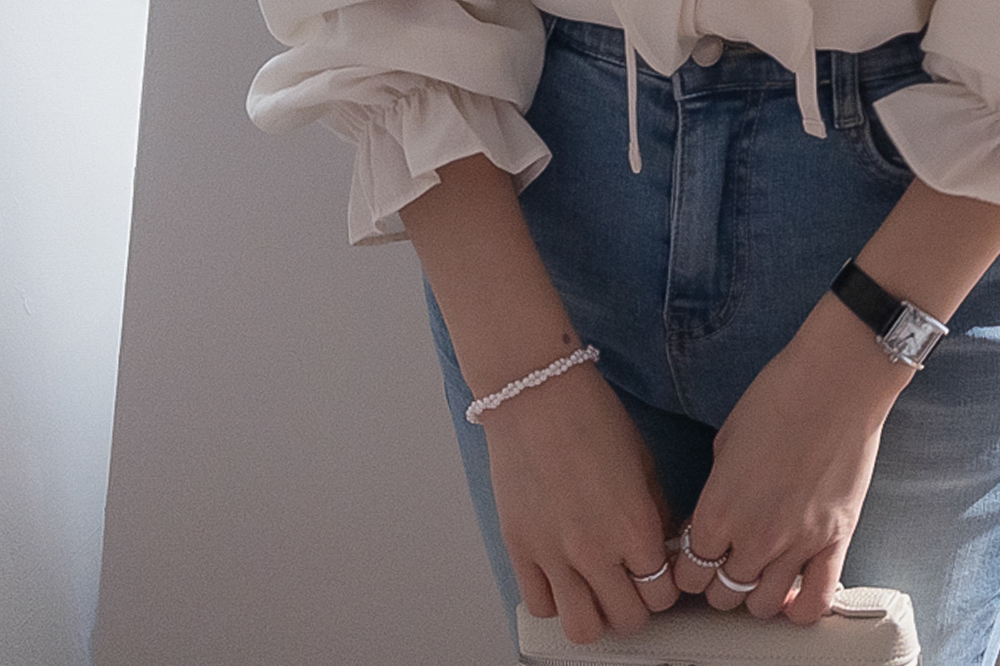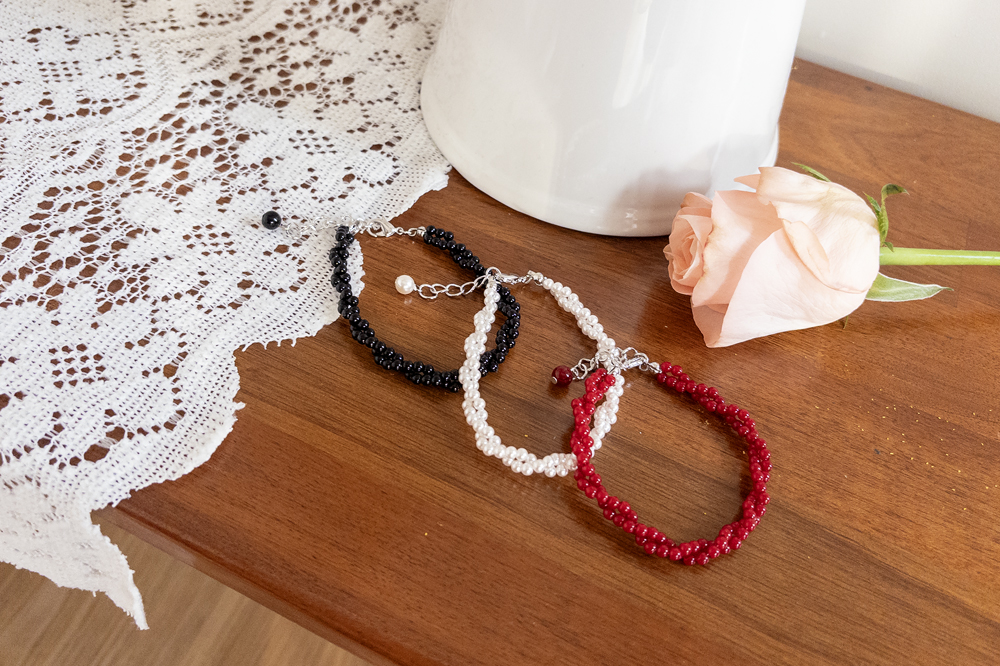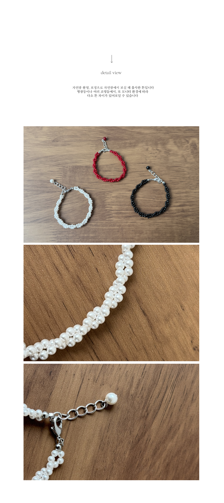 컬러 포인트가 더해진 비즈 팔찌예요 :) 잔잔한 비즈 디테일로 손목에 부담 없이 포인트를 주면서 여러 개 함께 레이어드해도 자연스럽게 어우러져 데일리하게 활용하기 좋은 아이템이에요 ♡