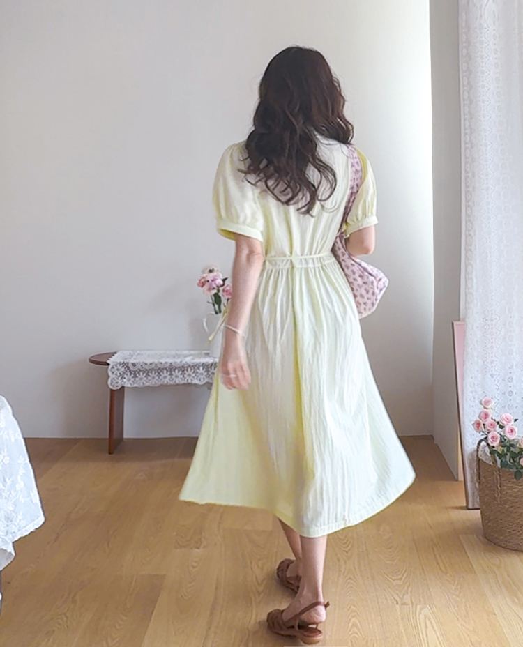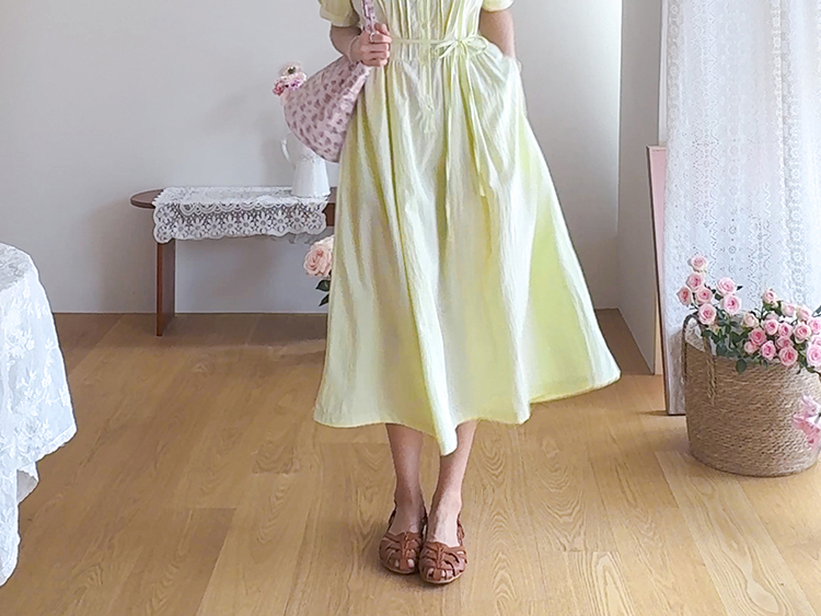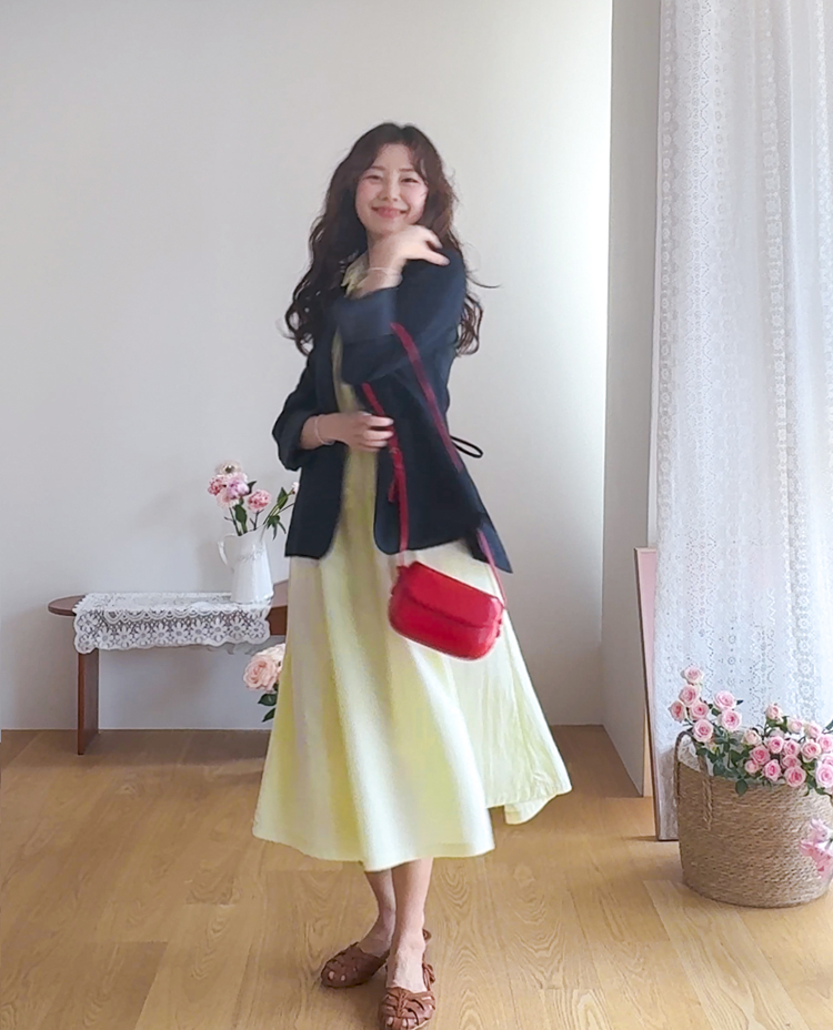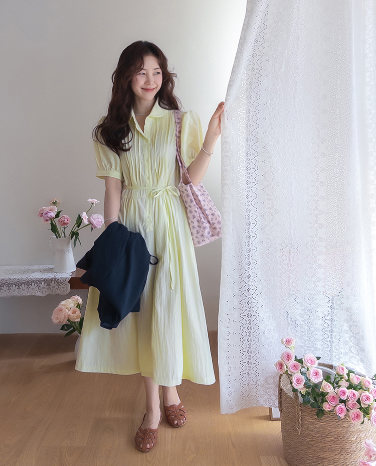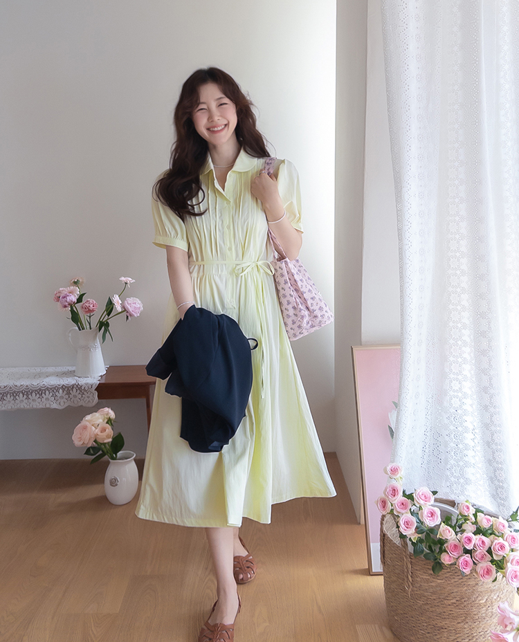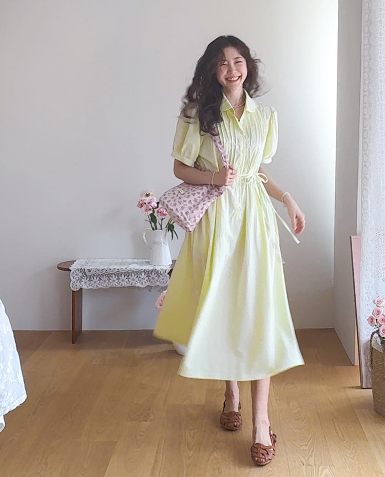 화사하고 은은한 컬러감으로 얼굴 밝기를 UP ↑시켜줄 사랑스런 무드의 원피스에요~.~ 프론트 핀턱 디테일로 밋밋함 없이 입체감이 느껴지는 포인트가 된답니다ㅎㅎ! 바스락~바스락한 원단감이라 점점 더워지는 날씨 찝찝함 없이 상쾌~쾌적하게 즐기기 좋구요~ 탈부착이 가능한 허리 스트랩이 달려 있어 체형에 맞게 핏 조절 가능해 라인을 더욱 예쁘게 살려준답니다^.^ 종아리 아래로 내려오는 롱 기장감으로 체형 커버도 OK~! 둥글 둥글한 카라 디자인과 봉긋하게 어깨 셔링이 잡혀 있어 더욱 더 러블리 ♡ 구김에도 강한 소재감으로 편하게 입을 수 있는 포인트 주기 좋은 MADE LIN 원피스 강추 드릴게요~*♥*