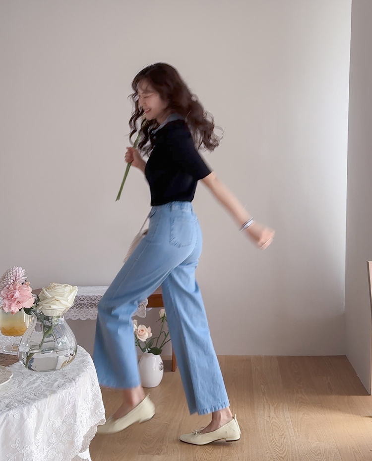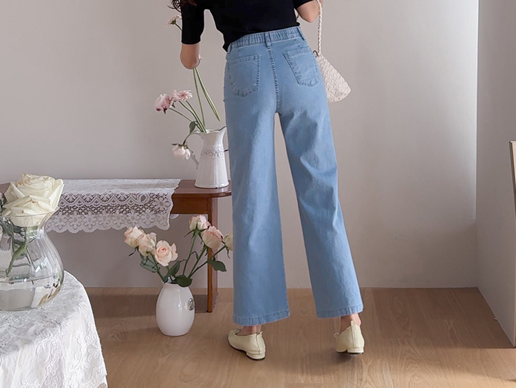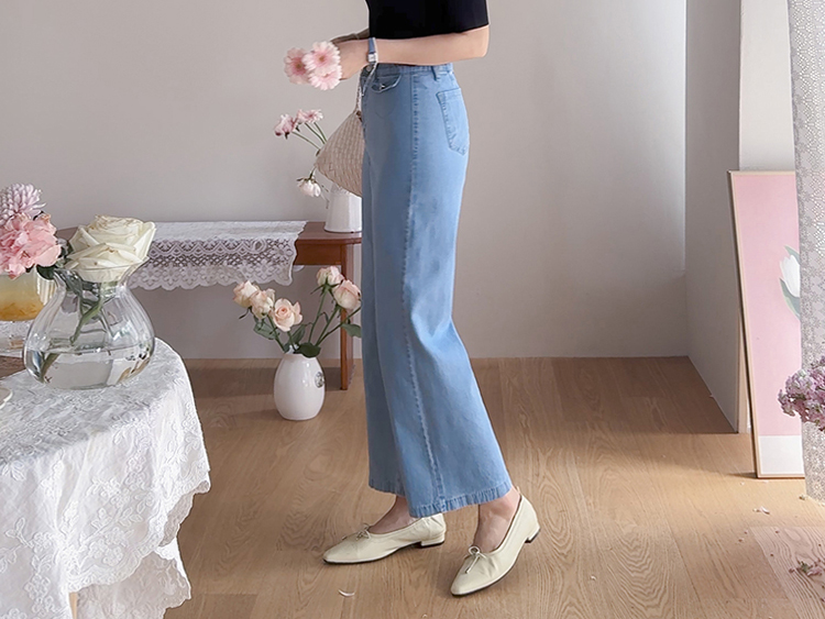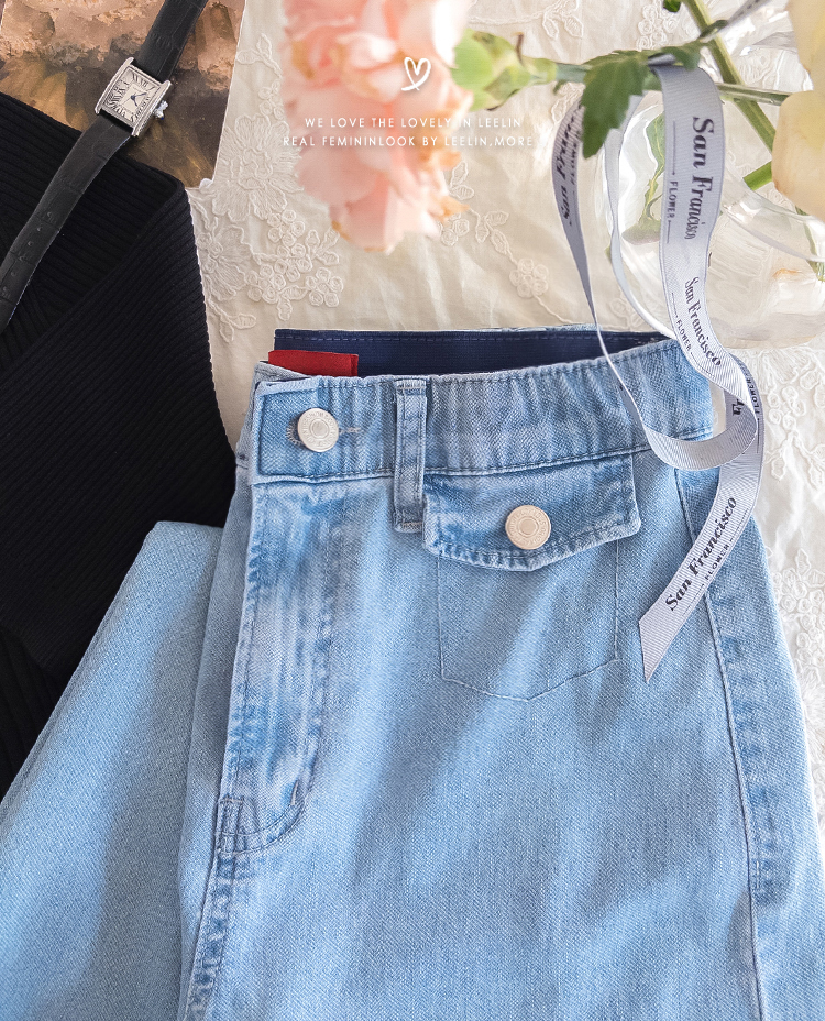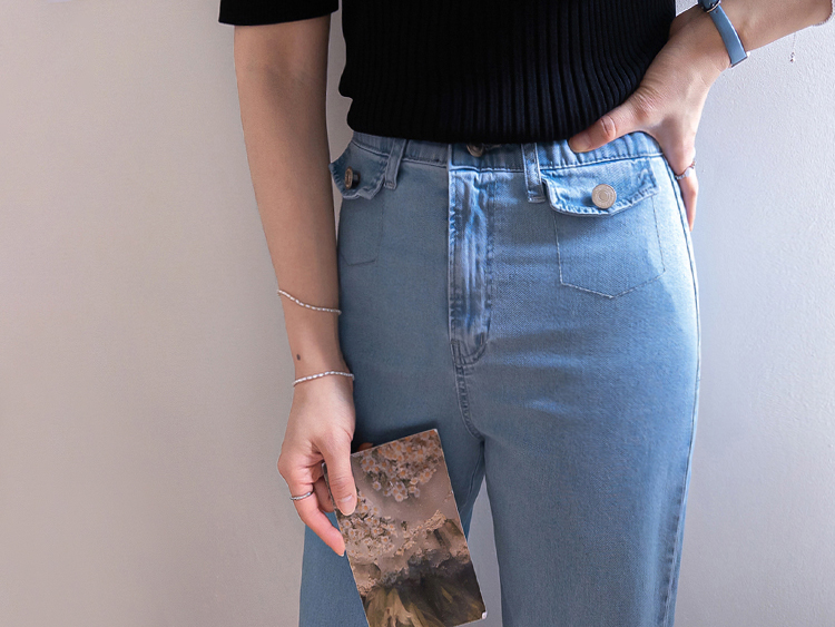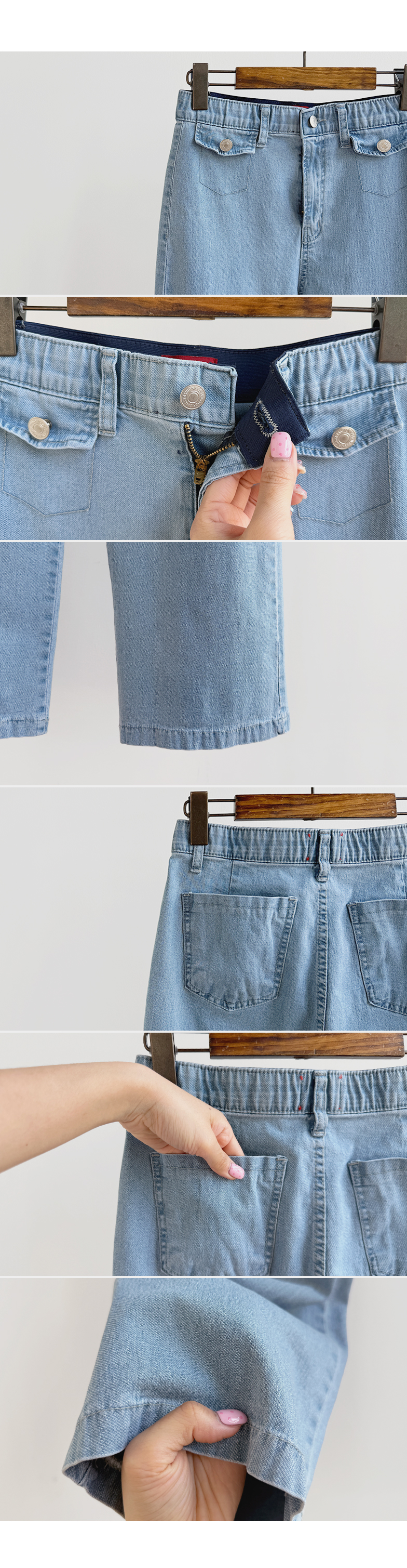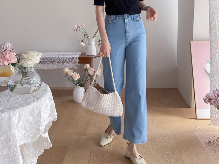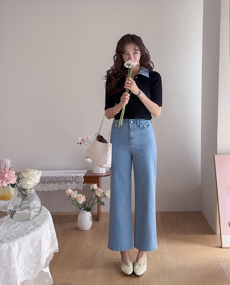 보기만 해도 시원한 느낌이 드는 연청 데님 팬츠 소개드려요 :) 전체적으로 맑고 부드러운 연청 컬러감으로 무겁지 않고 산뜻한 분위기를 연출해주며, 봄부터 여름까지 가볍게 입기 좋은 아이템이에요. 원단은 얇고 유연한 데님 소재에 스판이 더해져 입었을 때 뻣뻣함 없이 부드럽게 감기고 활동할 때도 정말 편안하게 착용되는 팬츠예요. 핏은 허리와 힙은 안정감 있게 잡아주면서 밑단까지 곧고 여유 있게 떨어지는 세미와이드 라인으로 다리 라인을 길고 반듯해 보이게 연출해주고요, 과하게 벙벙하지 않아 데일리로 부담 없이 입기 좋아요. 가장 큰 포인트는 앞쪽의 덮개형 포켓 디테일이에요. 작은 플랩에 버튼을 더한 디자인으로 기본 데님보다 훨씬 더 경쾌하고 감각적인 분위기를 살려주며 상의를 넣어 입었을 때 디테일이 더욱 돋보여요. 티셔츠, 니트, 블라우스 어디에나 잘 어울려 편안하면서도 포인트 있게 입기 좋은 데일리 데님으로 추천드릴게요 ♥