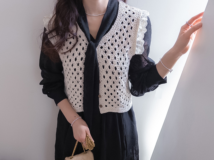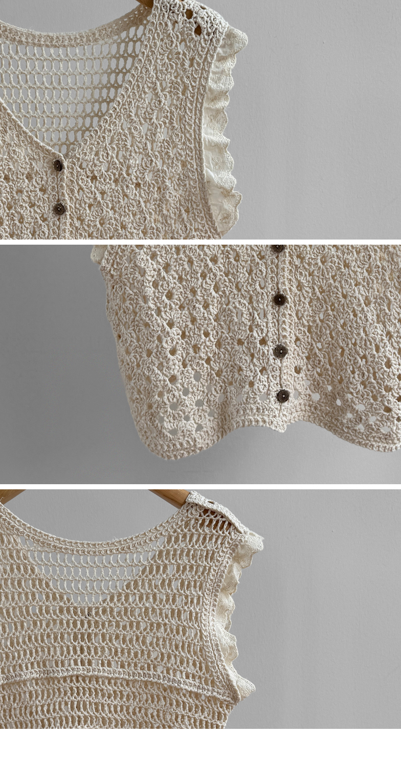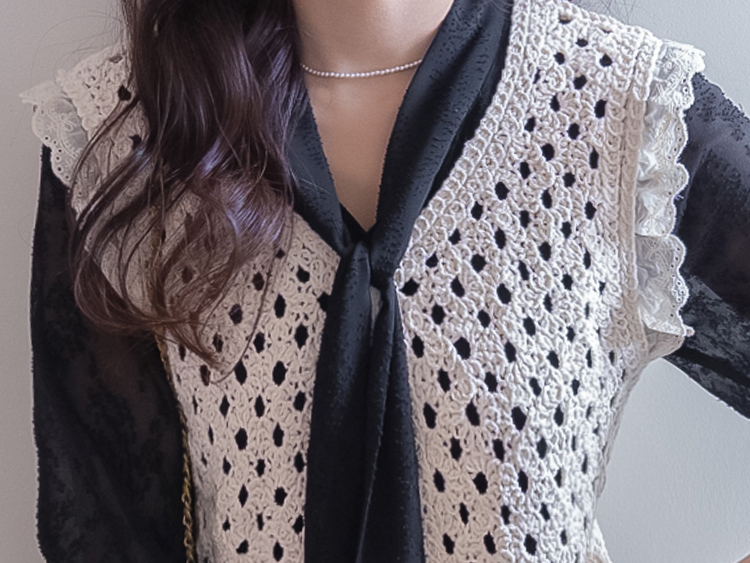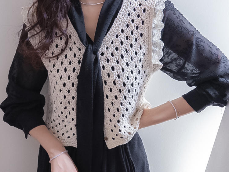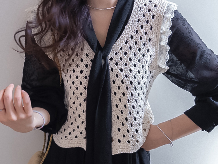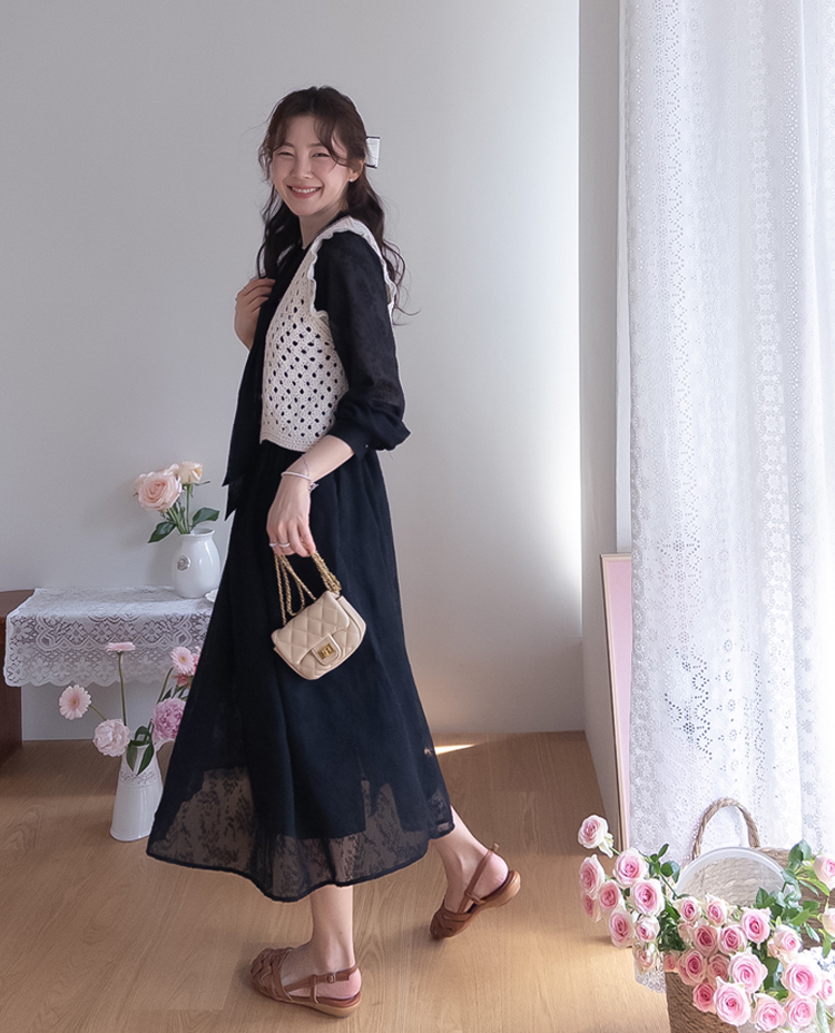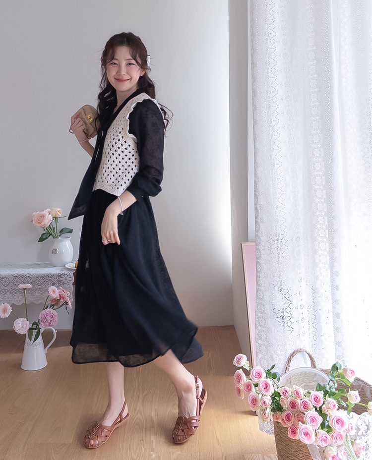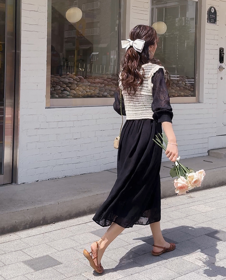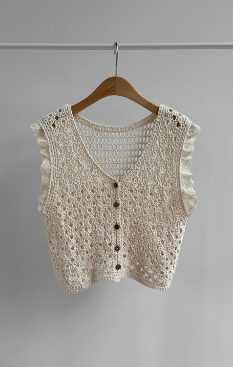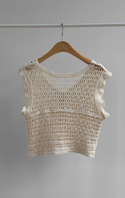 여성스럽고 내추럴한 무드가 돋보이는 크로셰 니트 베스트 소개드려요 :) 성글성글 짜여진 짜임이 매력적인 니트로 가볍고 통기성이 좋아, 여름 시즌에도 부담 없이 착용 가능한 아이템이에요*.* 답답함 없이 여리여리한 실루엣을 연출해주구요~ 숄더 라인에는 은은한 프릴 디테일이 더해져 과하지 않게 사랑스러운 무드를 살려주고, 단독으로도 충분히 포인트가 되어준답니다 :) 살짝 크롭된 기장감으로 하이웨스트 하의와 매치했을 때 비율이 더욱 좋아 보이구요✨ 티셔츠, 셔츠 위에 레이어드는 물론 슬리브리스처럼 단독 착용도 가능해 데일리룩부터 휴양지룩까지 다양하게 활용하기 좋은 아이템이에요♡ 하나쯤 소장하시면 여리 + 러블리 + 내추럴 무드까지 모두 챙길 수 있는 니트 베스트로 추천드릴게요 :)
