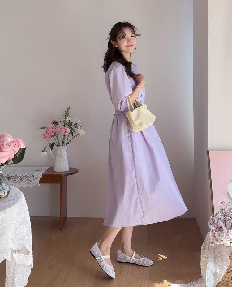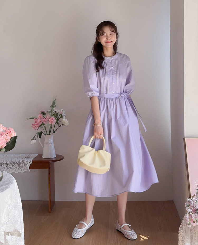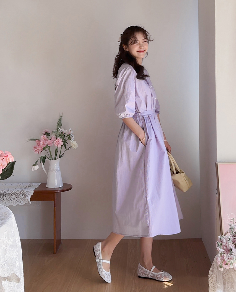 화사하고 은은한 컬러감으로 얼굴 밝기를 UP ↑시켜줄 사랑스런 무드의 원피스에요~.~ 프론트 핀턱 디테일로 밋밋함 없이 입체감이 느껴지는 포인트가 된답니다ㅎㅎ! 바스락~바스락한 원단감이라 점점 더워지는 날씨 찝찝함 없이 상쾌~쾌적하게 즐기기 좋구요~ 탈부착이 가능한 허리 스트랩이 달려 있어 체형에 맞게 핏 조절 가능해 라인을 더욱 예쁘게 살려준답니다^.^ 종아리 아래로 내려오는 롱 기장감으로 체형 커버도 OK~! 둥글 둥글한 카라 디자인과 봉긋하게 어깨 셔링이 잡혀 있어 더욱 더 러블리 ♡ 구김에도 강한 소재감으로 편하게 입을 수 있는 포인트 주기 좋은 MADE LIN 원피스 강추 드릴게요~*♥*