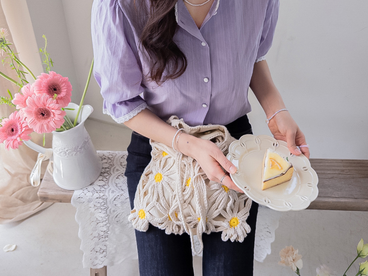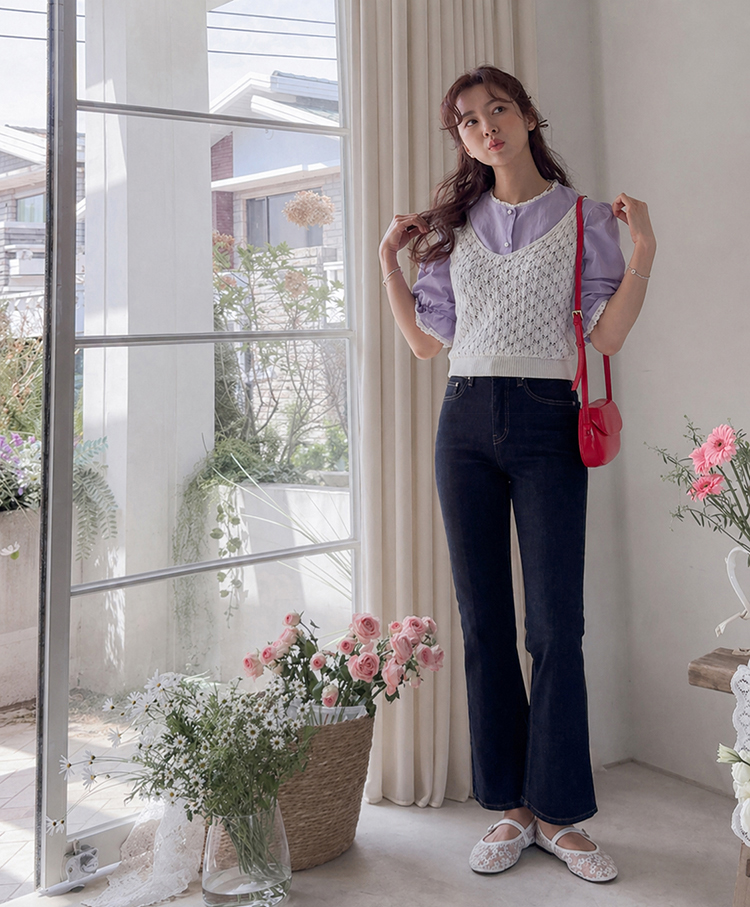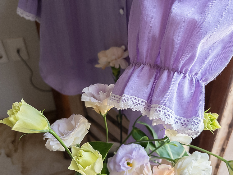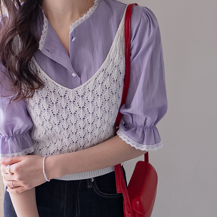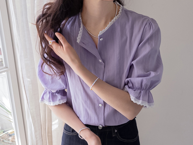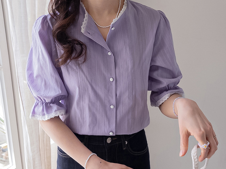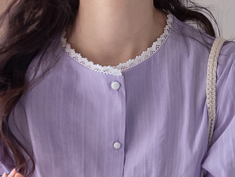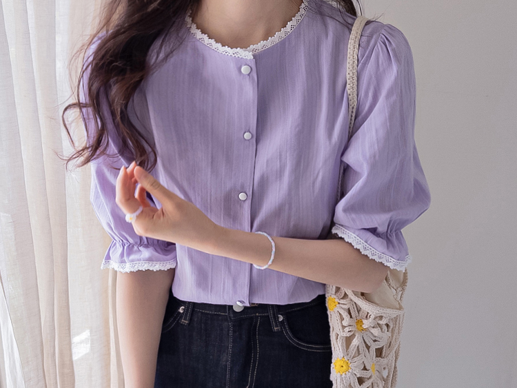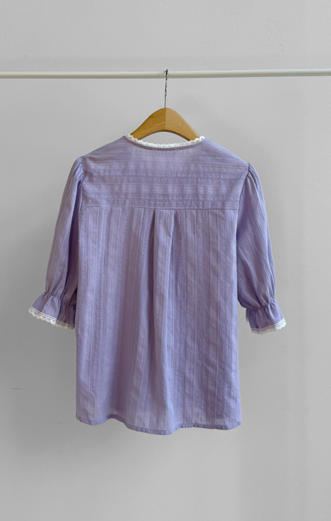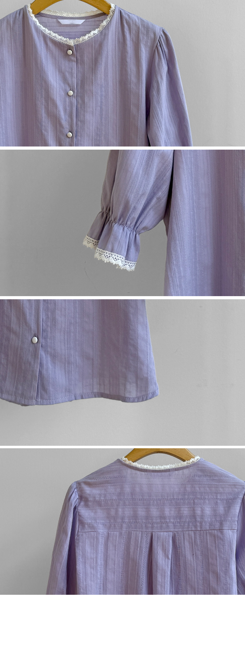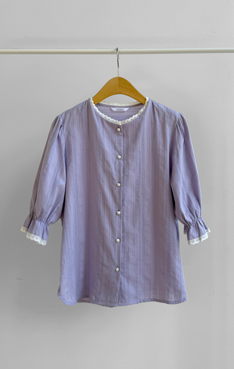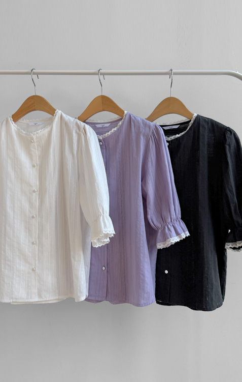은은한 컬러감과 디테일이 돋보이는 여성스러운 블라우스 소개드려요 :) 전체적으로 잔잔한 세로 결감이 더해진 원단으로 시각적으로 슬림해 보이면서 깔끔한 실루엣을 연출해주는 아이템이에요*.* 넥라인에는 섬세한 레이스 디테일이 더해져 과하지 않게 포인트를 주면서 얼굴을 더욱 화사하고 부드럽게 만들어주구요~ 소매는 자연스럽게 볼륨감이 살아있는 퍼프 디자인에 끝단 레이스로 팔 라인을 여리여리하게 연출해준답니다✨ 적당히 여유 있는 핏으로 군살을 자연스럽게 커버해주어 편안하게 착용 가능하구요! 가볍고 부드러운 코튼 텍스처로 피부에 부담 없이 닿아 데일리로 즐기기 좋은 착용감을 느끼실 수 있어요 :) 단독으로 입어도 충분히 포인트가 되며, 슬랙스, 스커트, 데님 어디에나 잘 어울려 출근룩, 데이트룩, 모임룩까지 다양하게 활용 가능한 블라우스로 추천드릴게요♡